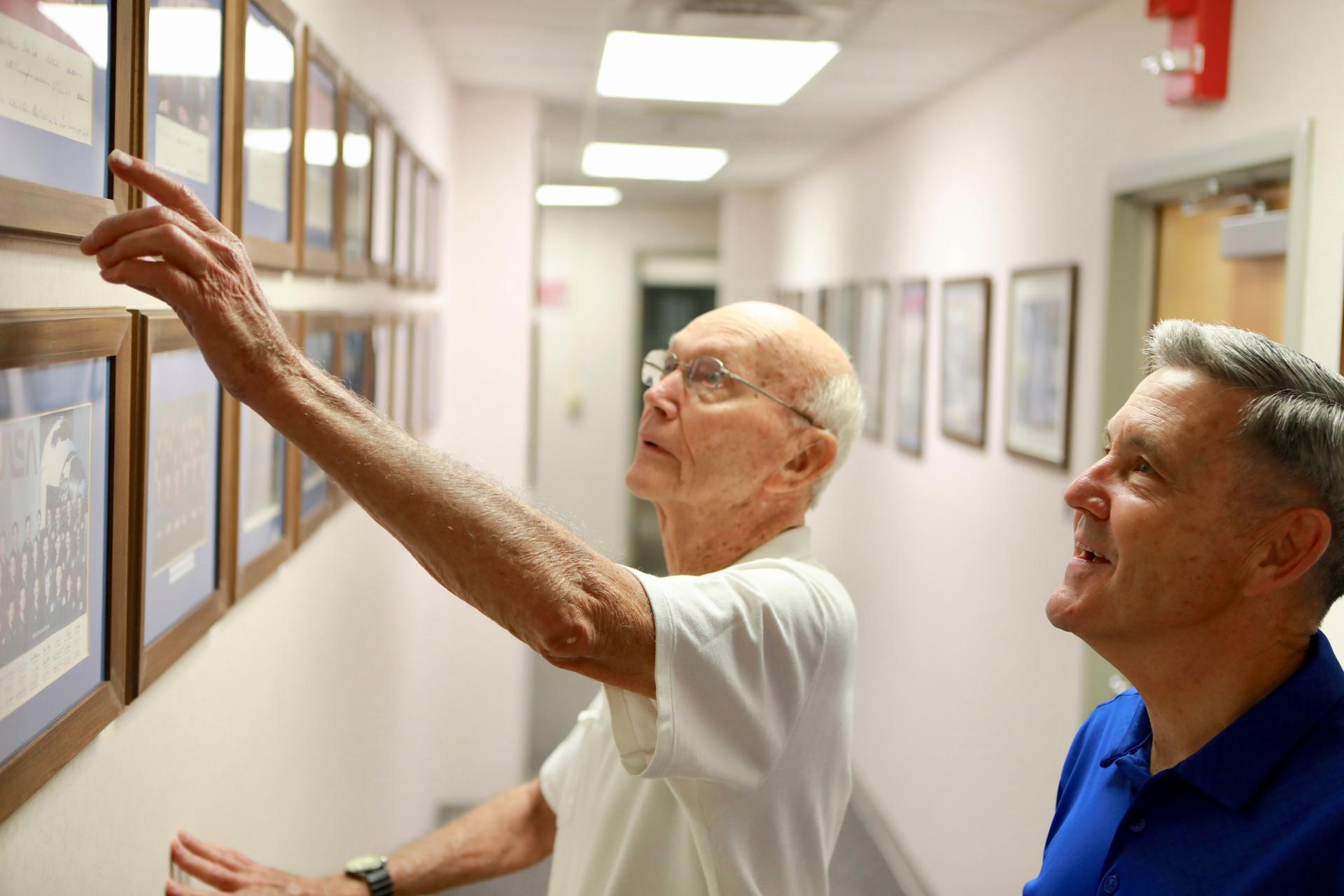 On the 50th anniversary of the Apollo 11 launch, July 16, 2019, astronaut Michael Collins speaks to Kennedy Space Center Director Bob Cabana in the astronaut crew quarters about the moments leading up to launch at 9:32 a.m. on July 16, 1969, and what it was like to be the first to land on the Moon.