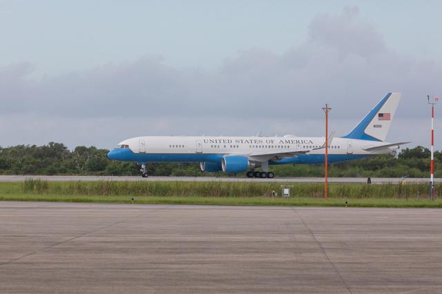 Vice President Mike Pence and second lady Karen Pence arrive aboard Air Force Two at Kennedy Space Center’s Shuttle Landing Facility on July 20, 2019. Pence, who chairs the National Space Council, visited the Florida spaceport on the 50th anniversary of the Apollo 11 mission, which landed the first two humans on the Moon. He recognized the historic mission, while also addressing NASA’s future plans to travel to the Moon and on to Mars.