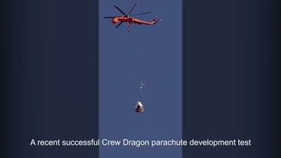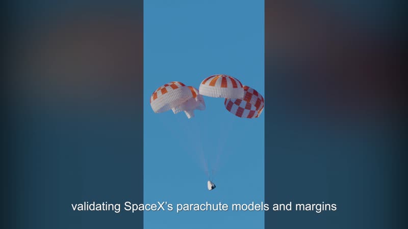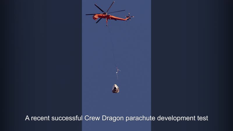 Crew Dragon parachutes successfully deploy during latest development test that simulated a pad abort, where the vehicle is tumbling at low altitude before parachute deploy, validating SpaceX’s parachute models and margins.