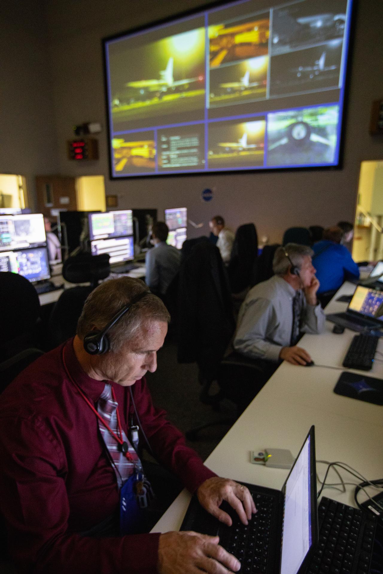 Members of the launch team monitor the launch of NASA’s Ionospheric Connection Explorer (ICON) satellite inside Hangar AE at Cape Canaveral Air Force Station (CCAFS) in Florida. The Northrop Grumman Pegasus XL rocket carrying ICON was released from the company’s L-1011 Stargazer aircraft at 9:59 p.m. EDT on Oct. 10, 2019, over the Atlantic Ocean about 50 miles from Daytona Beach following takeoff from CCAFS. ICON will spend two years studying the Earth’s ionosphere – the dynamic zone in our atmosphere where terrestrial weather from below meets space weather from above. The launch was managed by the agency’s Launch Services Program.