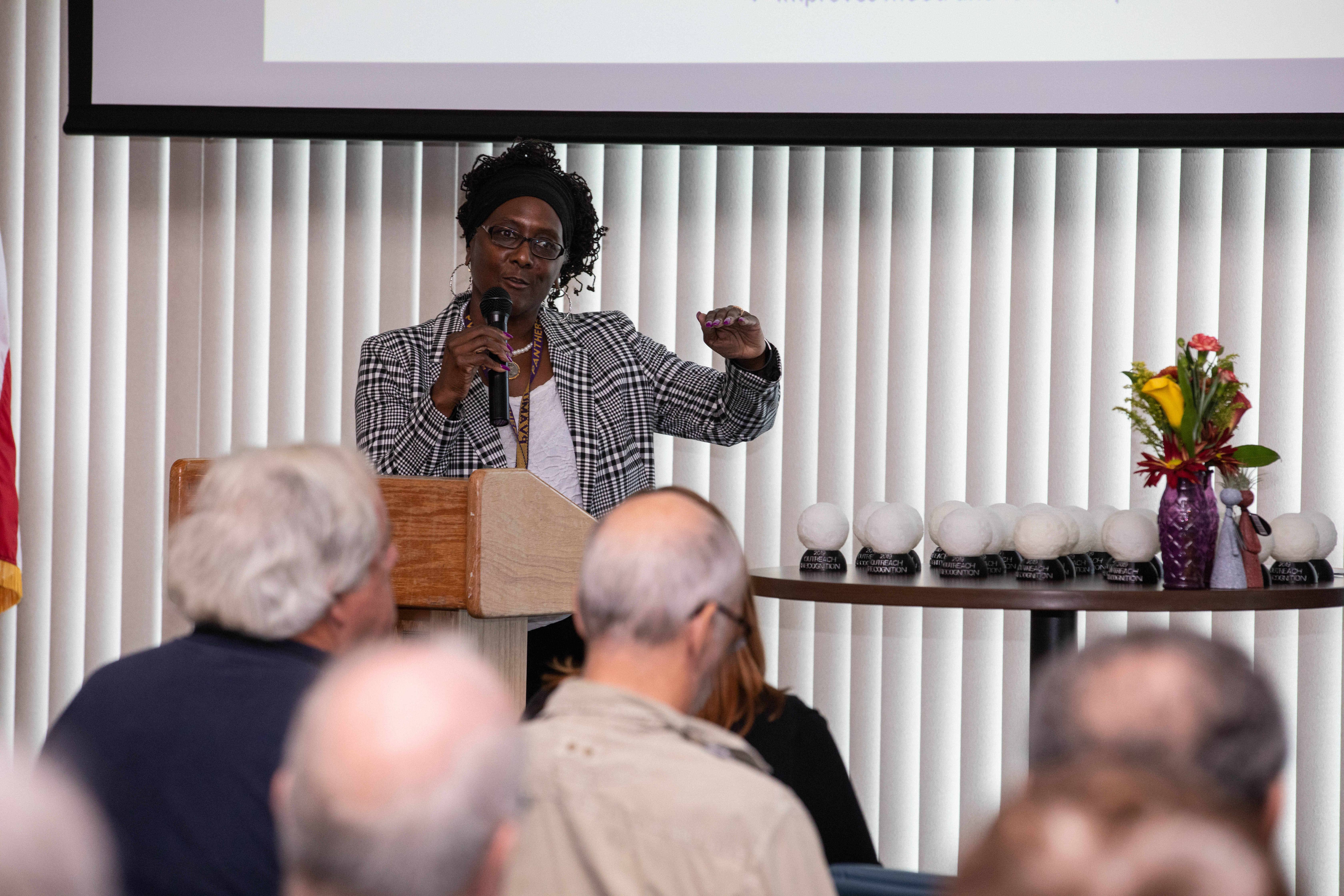 Hortense Diggs, director of the Communication and Public Engagement directorate at NASA’s Kennedy Space Center in Florida, relays her appreciation and thanks to volunteers and docents during an appreciation event on Nov. 1, 2019. The event honored the efforts of NASA retirees, current civil servant and contractor employees, and docents for their tireless efforts and volunteer hours spent sharing the NASA story with the public and members of the media.