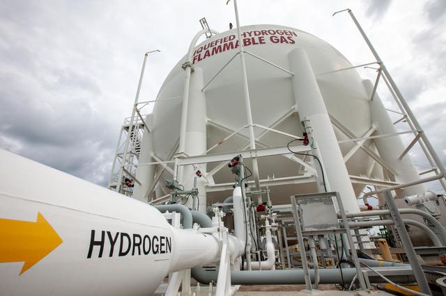 A liquid hydrogen storage tank is photographed at Launch Pad 39B on Nov. 8, 2019, at NASA’s Kennedy Space Center in Florida. The agency’s Exploration Ground Systems oversaw testing of the pad’s cryogenic systems – the infrastructure that will support the flow of liquid hydrogen and liquid oxygen from the storage tanks to the Space Launch System (SLS) rocket – in preparation for the launch of SLS with the Orion spacecraft atop for the uncrewed Artemis I mission. Each of the liquid hydrogen and liquid oxygen tanks can hold more than 800,000 gallons of propellant. The liquid hydrogen, lighter than liquid oxygen, will make its way from the tank to the rocket using gaseous hydrogen to pressurize the sphere at the time of launch, while the liquid oxygen will be sent to the rocket via pumps.