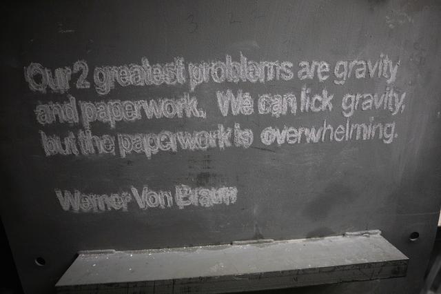 Each of the eight haunch access doors located in the mobile launcher platform contains an inspirational quote related to space travel. The quotes are from John F. Kennedy, H.G. Wells and Werner Von Braun, among others. The heavy metal doors will be bolted in place to protect electrical and support systems during liftoff of the Space Launch System rocket and Orion spacecraft.