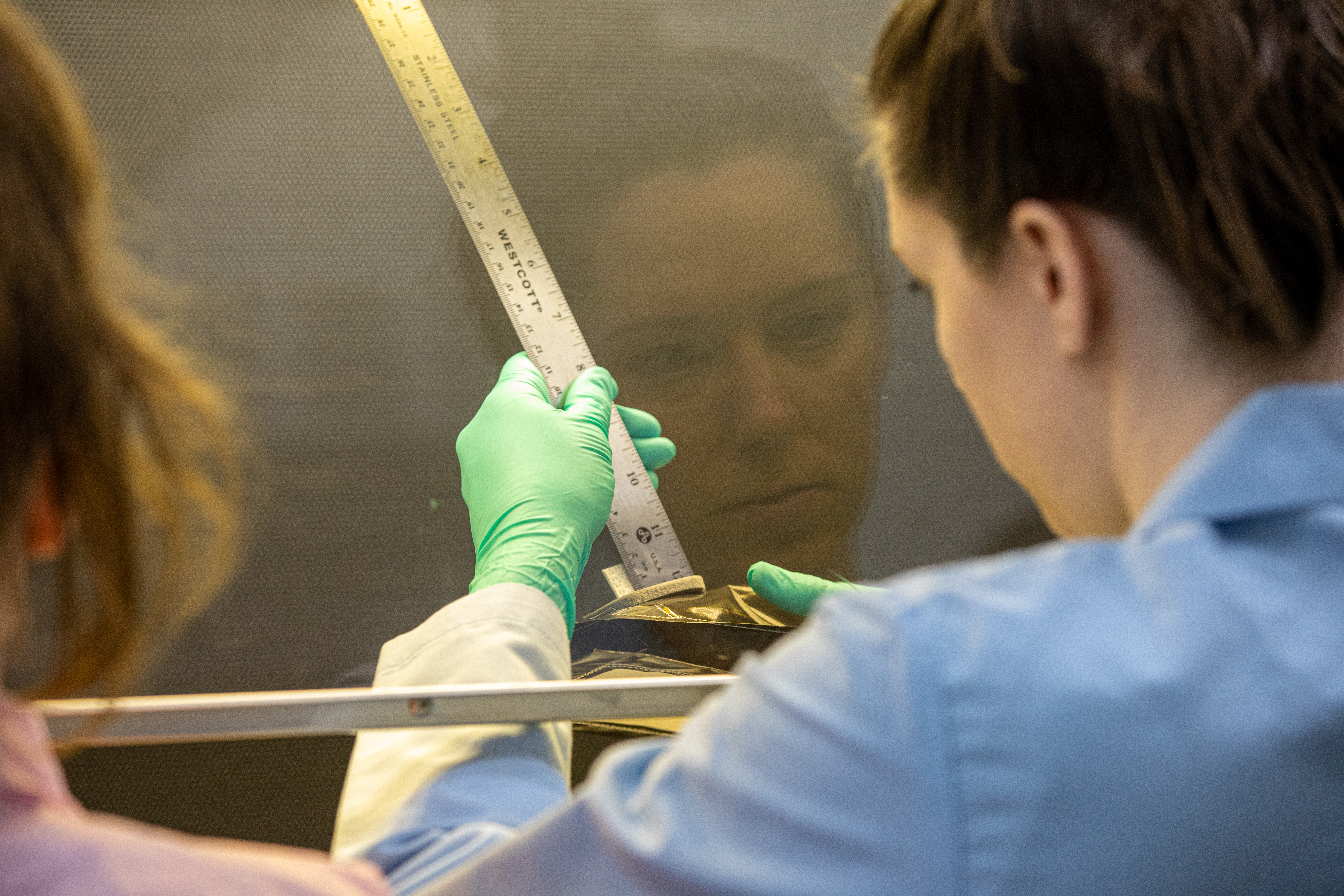 Jess Bunchek, a pseudonaut and associate scientist at NASA’s Kennedy Space Center, measures the seed wick emerging from a plant pillow in the Florida spaceport’s Space Station Processing Facility on Jan. 16, 2019. Researchers will then glue seeds onto the wick. A common method used to grow plants in space, the pillows are being sent to the International Space Station for a series of VEG-03 experiments that will study the growth of three types of leafy greens in a microgravity environment and test a new way of handling seeds. The experiments will be launched to the orbiting laboratory aboard a Northrop Grumman Antares rocket and Cygnus spacecraft on the company’s 13th resupply services mission. Liftoff is scheduled for Feb. 9, 2020, at 5:39 p.m. EST from the agency’s Wallops Flight Facility in Virginia.