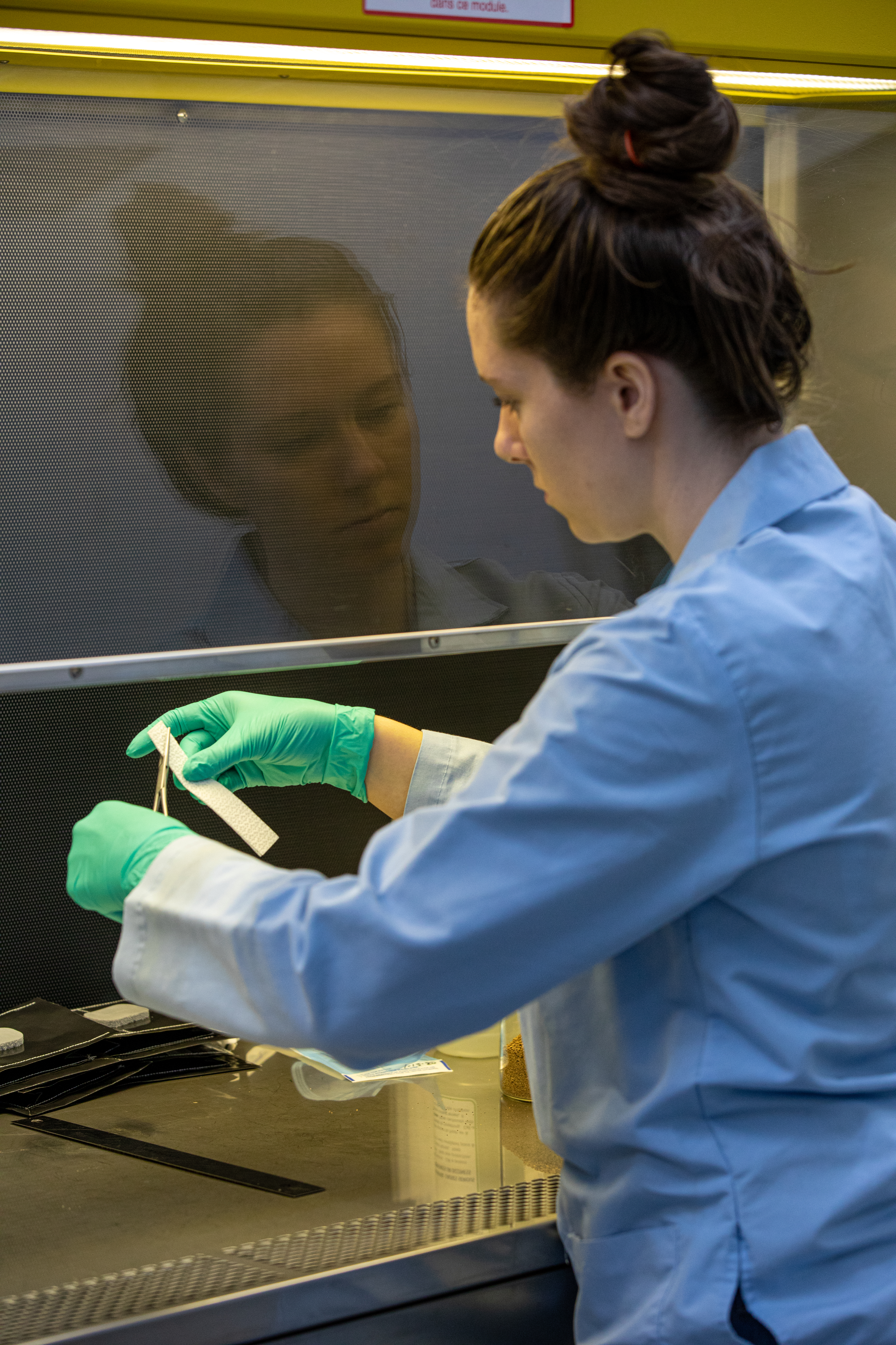 Jess Bunchek, a pseudonaut and associate scientist at NASA’s Kennedy Space Center in Florida, cuts strips of seed wick that will be placed in plant pillows inside the Space Station Processing Facility on Jan. 16, 2020. The pillows, which are a common method used to grow plants in space, are being sent to the International Space Station for a series of VEG-03 experiments that will study the growth of three types of leafy greens and a new seed handling material in a microgravity environment. The experiments will be launched to the orbiting laboratory aboard a Northrop Grumman Antares rocket and Cygnus spacecraft on the company’s 13th resupply services mission. Liftoff is scheduled for Feb. 9, 2020, at 5:39 p.m. EST from the agency’s Wallops Flight Facility in Virginia.