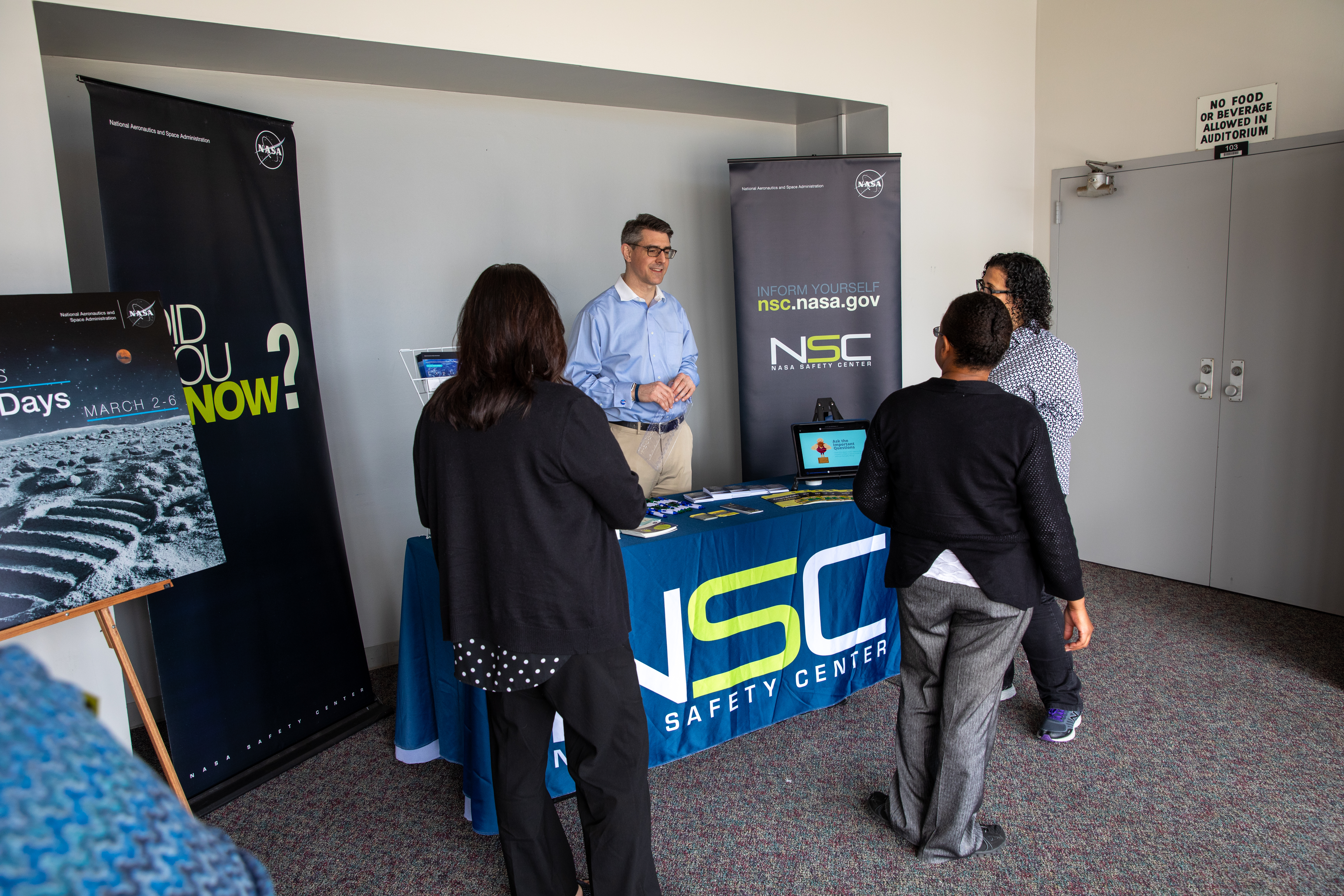 Chas Hoff, a public affairs official from NASA’s Goddard Space Flight Center, provides information on the NASA Safety Center to Kennedy Space Center employees in the Florida spaceport’s Training Auditorium on March 2, 2020. Hoff had an informational table set up during the center’s annual Safety and Health Days, which took place March 2 through March 6. Throughout the week, Kennedy employees had the opportunity to attend a variety of presentations – all of which focused on how to maintain a safe and healthy workforce.