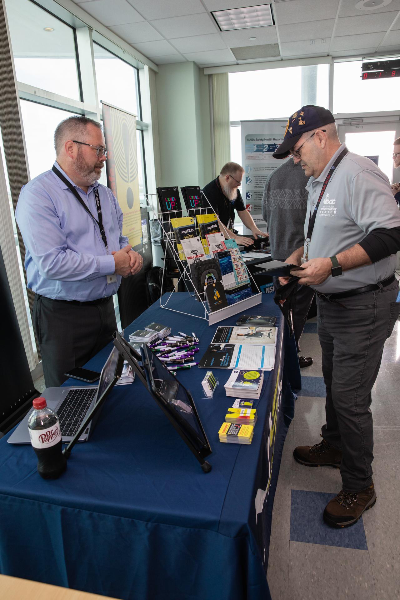NASA Kennedy Space Center employees learn more about safety from informational tables set up inside the Florida spaceport’s Operations Support Building II on March 3, 2020, during the center’s annual Safety and Health Days. Taking place March 2 through March 6, Safety and Health Days provides Kennedy employees with a variety of presentations to attend – all of which focus on how to maintain a safe and healthy workforce.