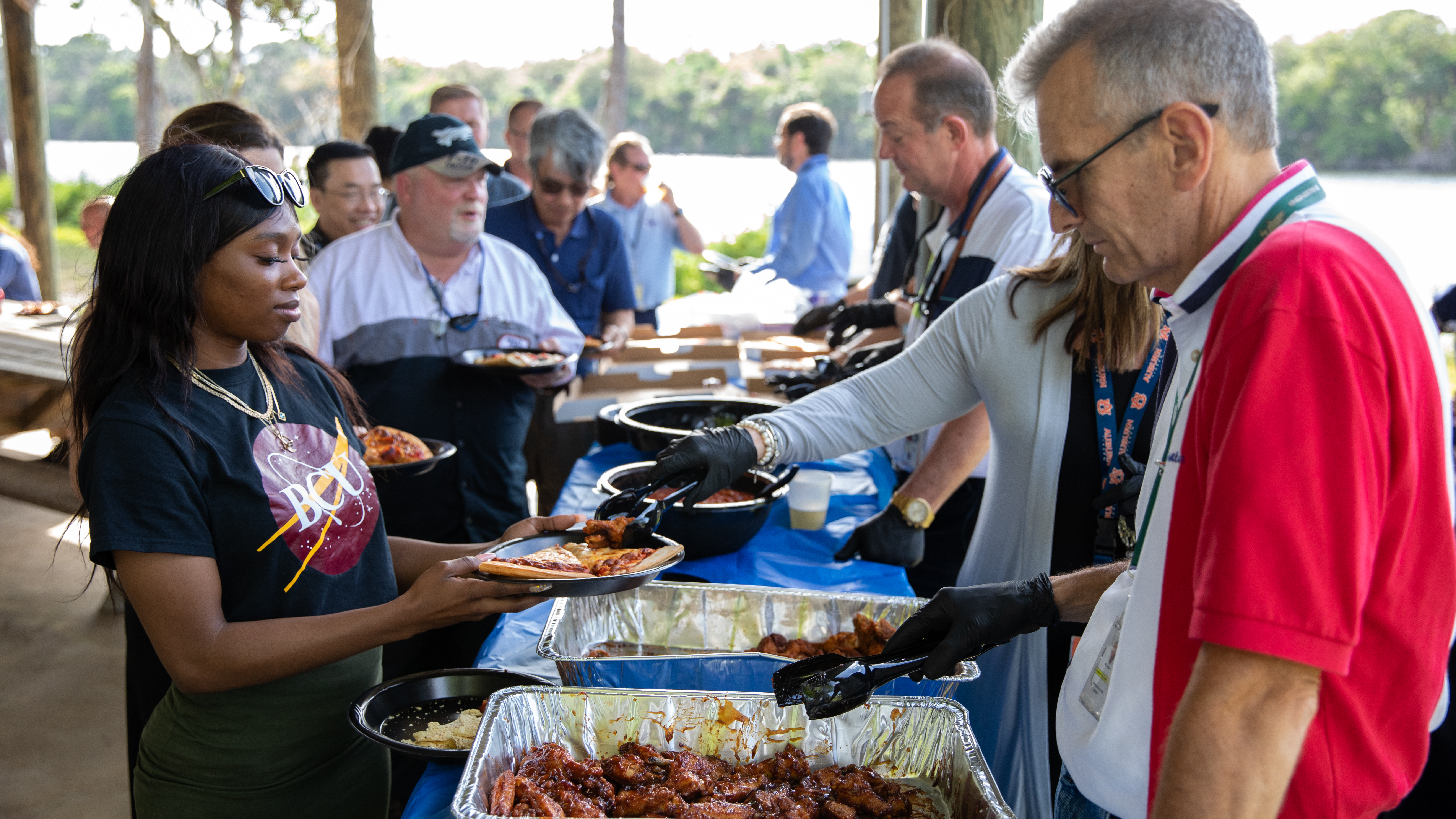 Managers at NASA’s Kennedy Space Center in Florida serve food to Kennedy employees during a Safety and Health Days celebration on March 5, 2020. Taking place March 2 through March 6, Safety and Health Days provides Kennedy employees with a variety of presentations to attend – all of which focus on how to maintain a safe and healthy workforce. The celebration on March 5 took place at the spaceport’s KARS Park II and was open for all employees to attend.