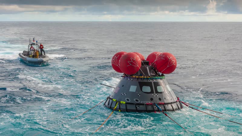 During the first full mission profile test of the recovery procedures for Artemis I, NASA’s Landing and Recovery team met their objectives. The team from Exploration Ground Systems at Kennedy Space Center works with members of the DoD to hone their procedures before Orion splashes down in the Pacific as part of NASA’s Artemis program.
