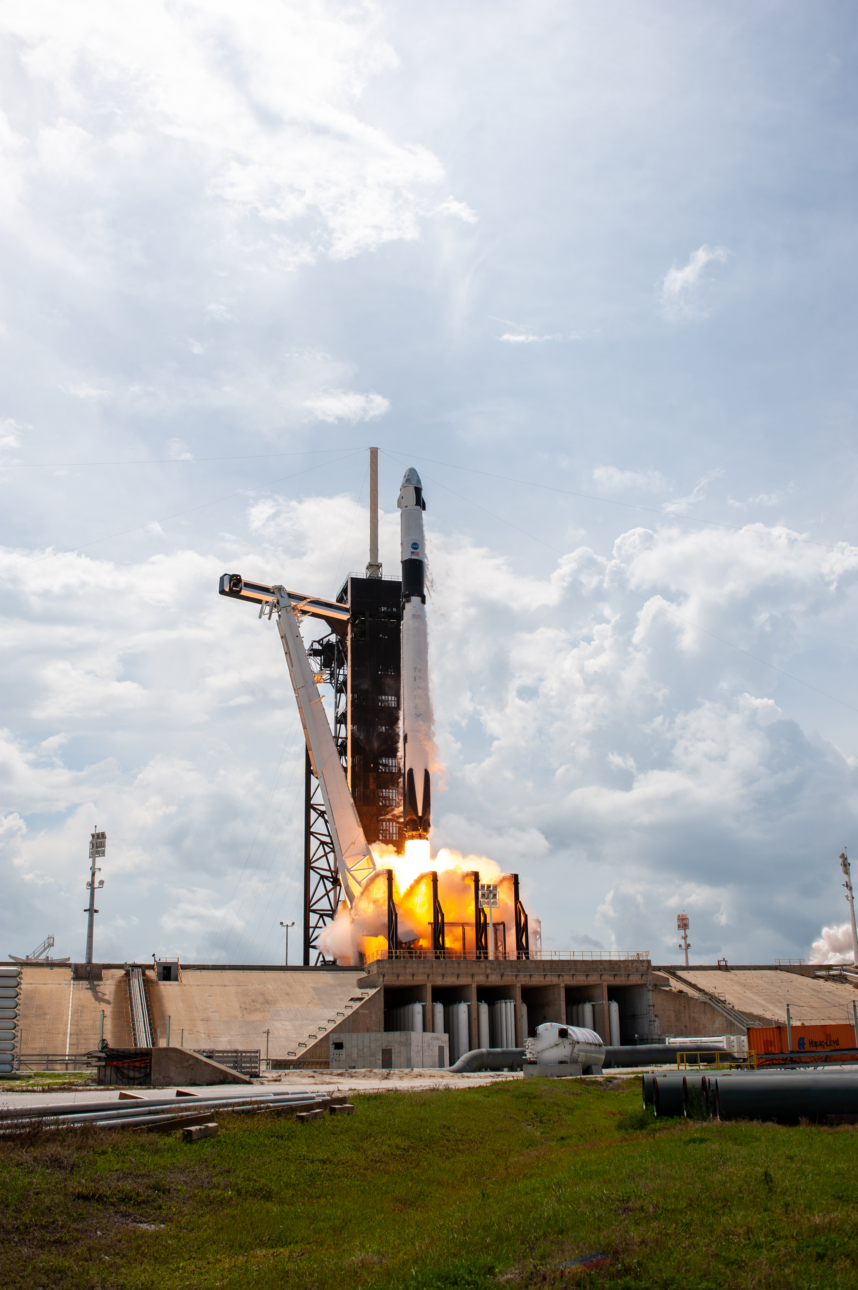 A SpaceX Falcon 9 rocket and Crew Dragon spacecraft lifts off from Launch Complex 39A at NASA’s Kennedy Space Center in Florida on May 30, 2020, carrying NASA astronauts Robert Behnken and Douglas Hurley to the International Space Station for the agency’s SpaceX Demo-2 mission. Liftoff occurred at 3:22 p.m. EDT. Behnken and Hurley are the first astronauts to launch from U.S. soil to the space station since the end of the Space Shuttle Program in 2011. Part of NASA’s Commercial Crew Program, this will be SpaceX’s final flight test, paving the way for the agency to certify the crew transportation system for regular, crewed flights to the orbiting laboratory.