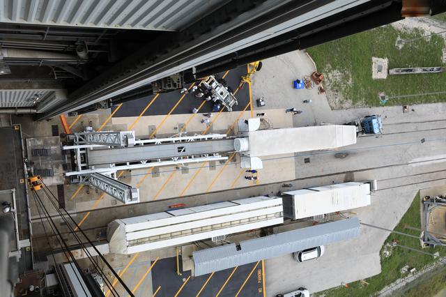 The second of four solid rocket boosters (SRB) for the United Launch Alliance Atlas V 541 rocket for NASA’s Mars 2020 mission with the Perseverance rover arrives at the Vertical Integration Facility (VIF) at Space Launch Complex 41 at Cape Canaveral Air Force Station (CCAFS) in Florida on June 3, 2020. The SRB will be prepared for lift and mating to the Atlas V booster in the VIF. The Mars Perseverance rover is scheduled to launch on July 20, 2020, atop the Atlas V rocket from Pad 41. The rover is part of NASA’s Mars Exploration Program, a long-term effort of robotic exploration of the Red Planet. The rover’s seven instruments will search for habitable conditions in the ancient past and signs of past microbial life on Mars. The Launch Services Program at Kennedy is responsible for launch management.
