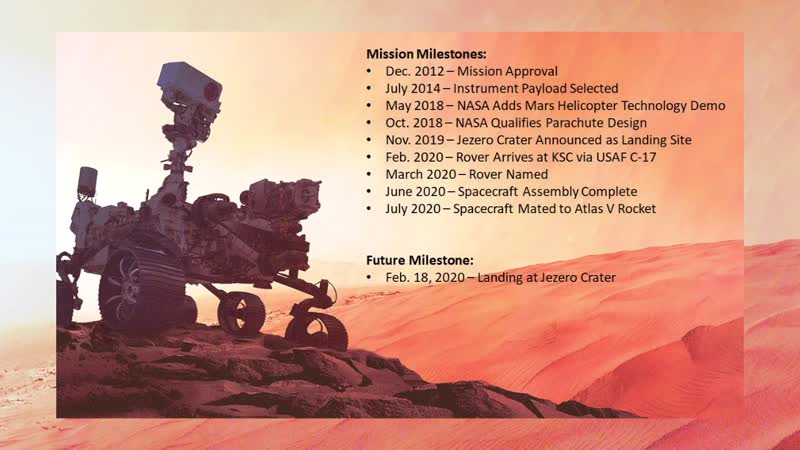 Mars 2020 Prelaunch News Conference with representatives from NASA, United Launch Alliance and the 45th Space Wing. Participants: Jim Bridenstine, NASA Administrator; Thomas Zurbuchen, NASA Associate Administrator; Omar Baez, Launch Director, NASA Launch Services Program; Matt Wallace, Deputy Project Manager, NASA’s Jet Propulsion Laboratory; Tory Bruno, United Launch Alliance; Jessica Williams, 45th Space Force Weather Officer