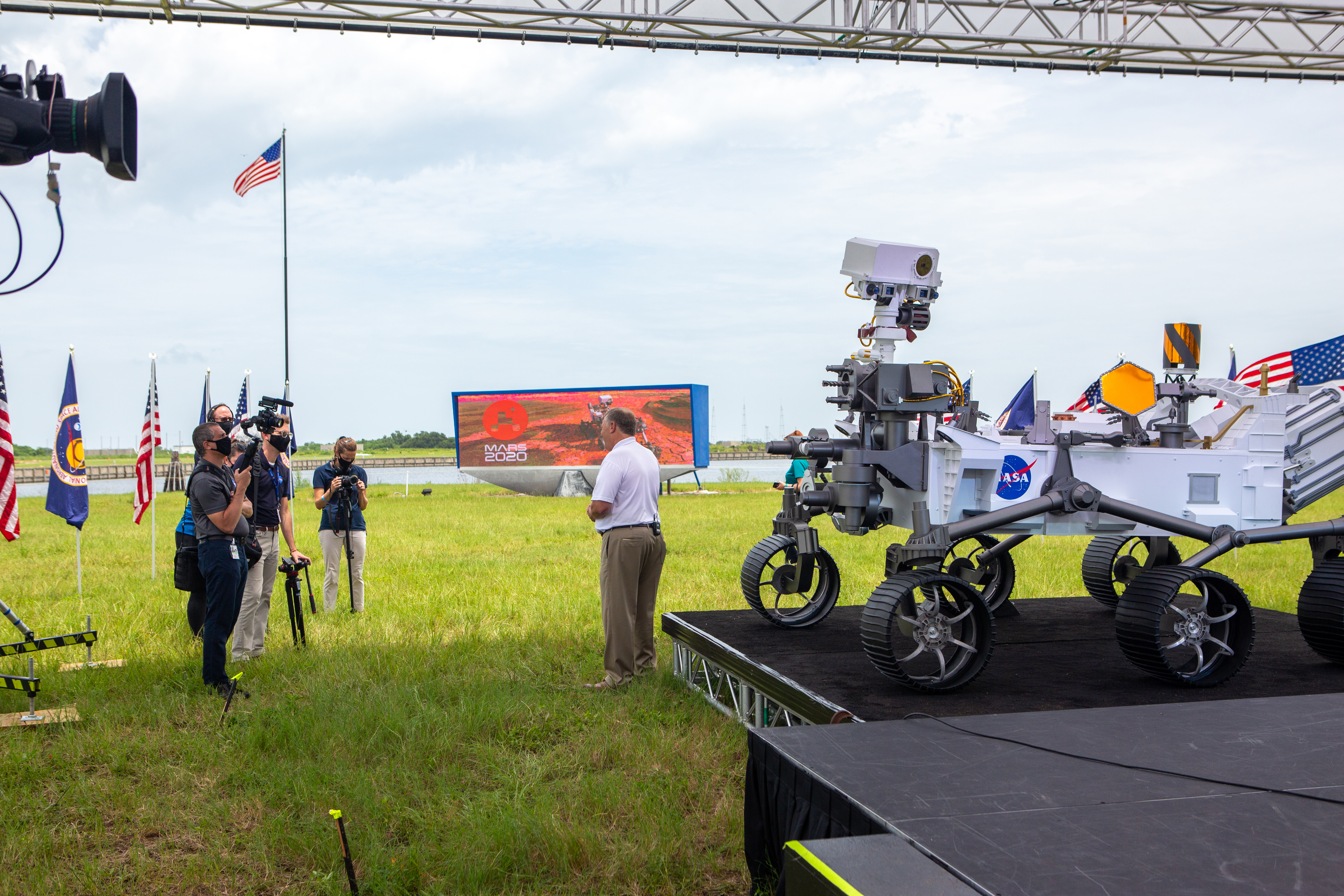 NASA Deputy Administrator Jim Morhard answers questions during a Mars 2020 NASA Social at Kennedy Space Center’s News Center in Florida on July 29, 2020. The Mars Perseverance rover and Ingenuity helicopter are scheduled to launch July 30, on a United Launch Alliance Atlas V 541 rocket from Space Launch Complex 41 at nearby Cape Canaveral Air Force Station. The rover is part of NASA’s Mars Exploration Program, a long-term effort of robotic exploration of the Red Planet. The rover will search for habitable conditions in the ancient past and signs of past microbial life on Mars. The Launch Services Program at Kennedy is responsible for launch management.