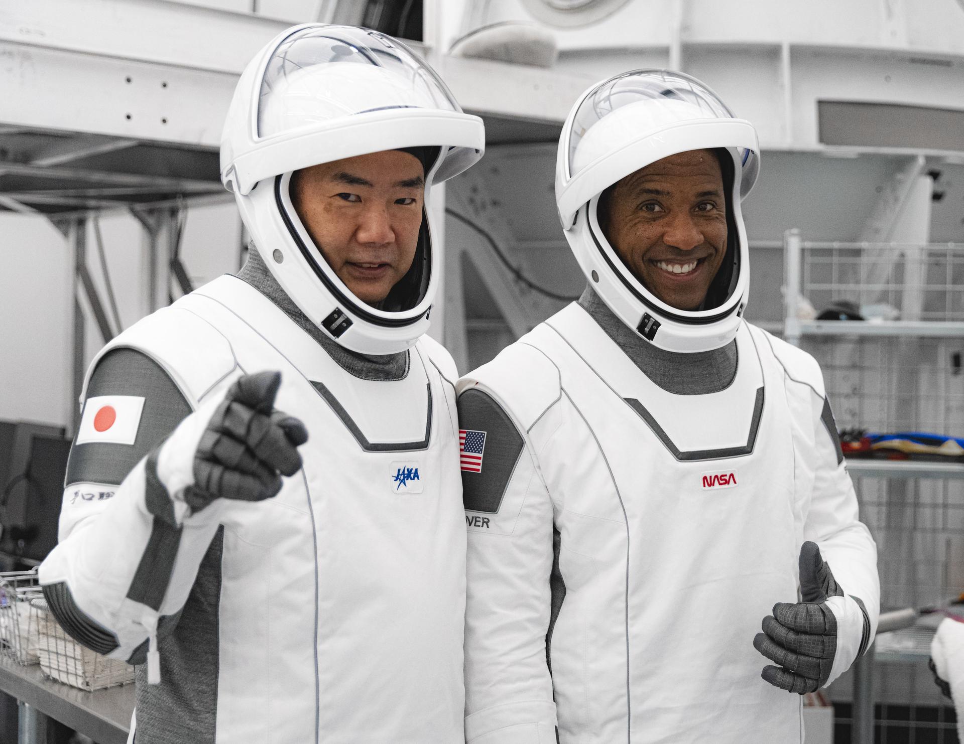 NASA’s SpaceX Crew-1 astronauts participate in crew equipment interface testing at SpaceX headquarters in Hawthorne, California, on Sept. 24, 2020. From left are mission specialist Soichi Noguchi, Japan Aerospace Exploration Agency (JAXA) astronaut, and Crew-1 pilot Victor Glover. The other Crew-1 astronauts also training, but not pictured, are mission specialist Shannon Walker, and Crew Dragon commander Michael Hopkins, all NASA astronauts. NASA’s SpaceX Crew-1 mission is the first crew rotational flight of a U.S. commercial spacecraft with astronauts to the International Space Station. The Crew-1 mission will launch from Launch Complex 39A at Kennedy Space Center in Florida. Crew-1 is part of NASA's Commercial Crew Program, which has returned human spaceflight capabilities to the U.S.
