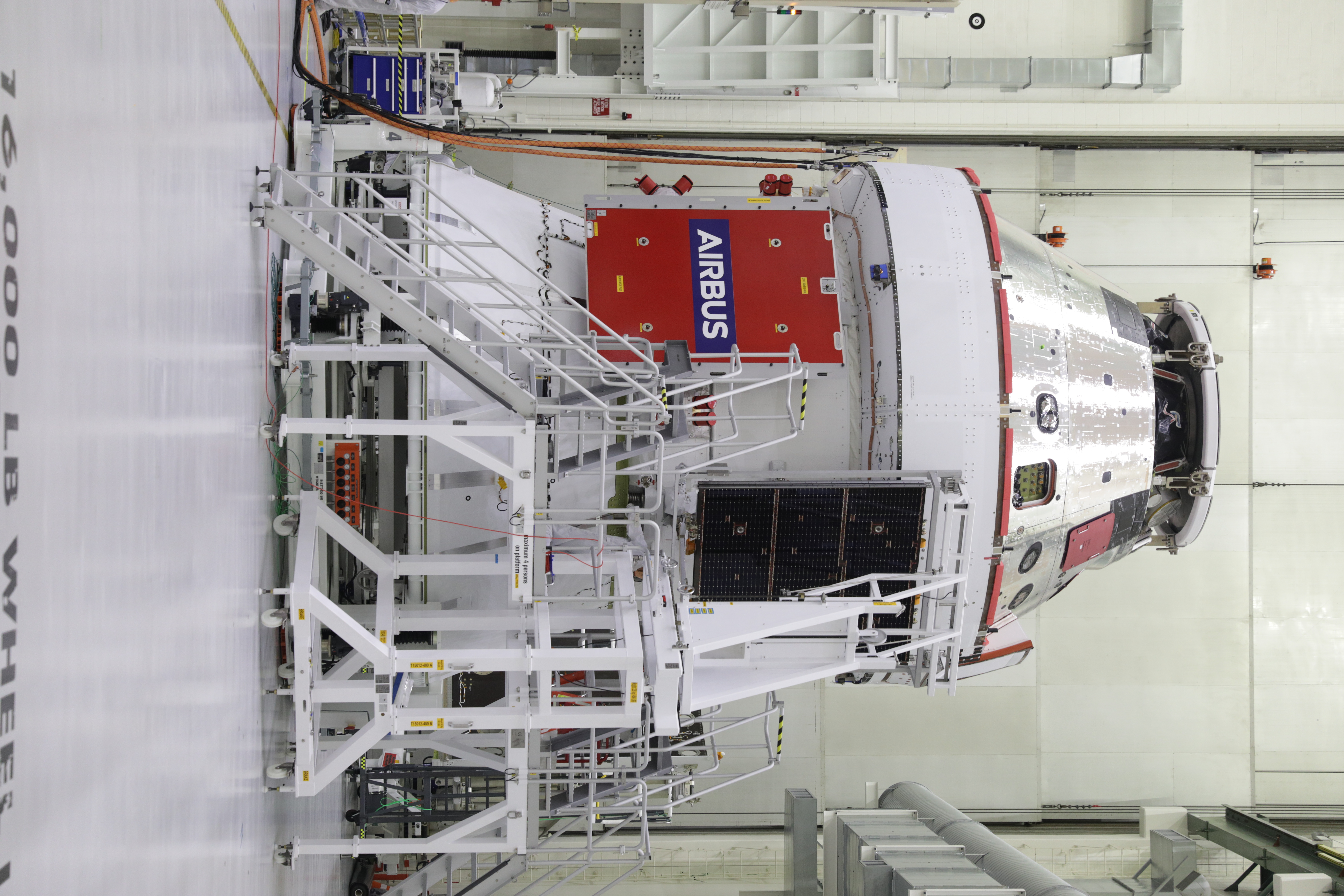 The final of four solar array wings is shown being installed prior to receiving its protective covering on the Orion spacecraft for Artemis I inside the Neil Armstrong Operations and Checkout Building high bay at NASA’s Kennedy Space Center in Florida on Sept. 30, 2020. The solar arrays were extended, inspected, and then retracted, before installation on the spacecraft. Each solar array panel will generate 11 kilowatts of power and span about 63 feet. The array is a component of Orion’s service module, which is provided by the European Space Agency and built by Airbus Defence and Space to supply Orion’s power, propulsion, air and water. The first in a series of increasingly complex missions, Artemis I will test the Orion spacecraft and Space Launch System as an integrated system ahead of crewed flights to the Moon. Under the Artemis program, NASA will land the first woman and the next man on the Moon in 2024.