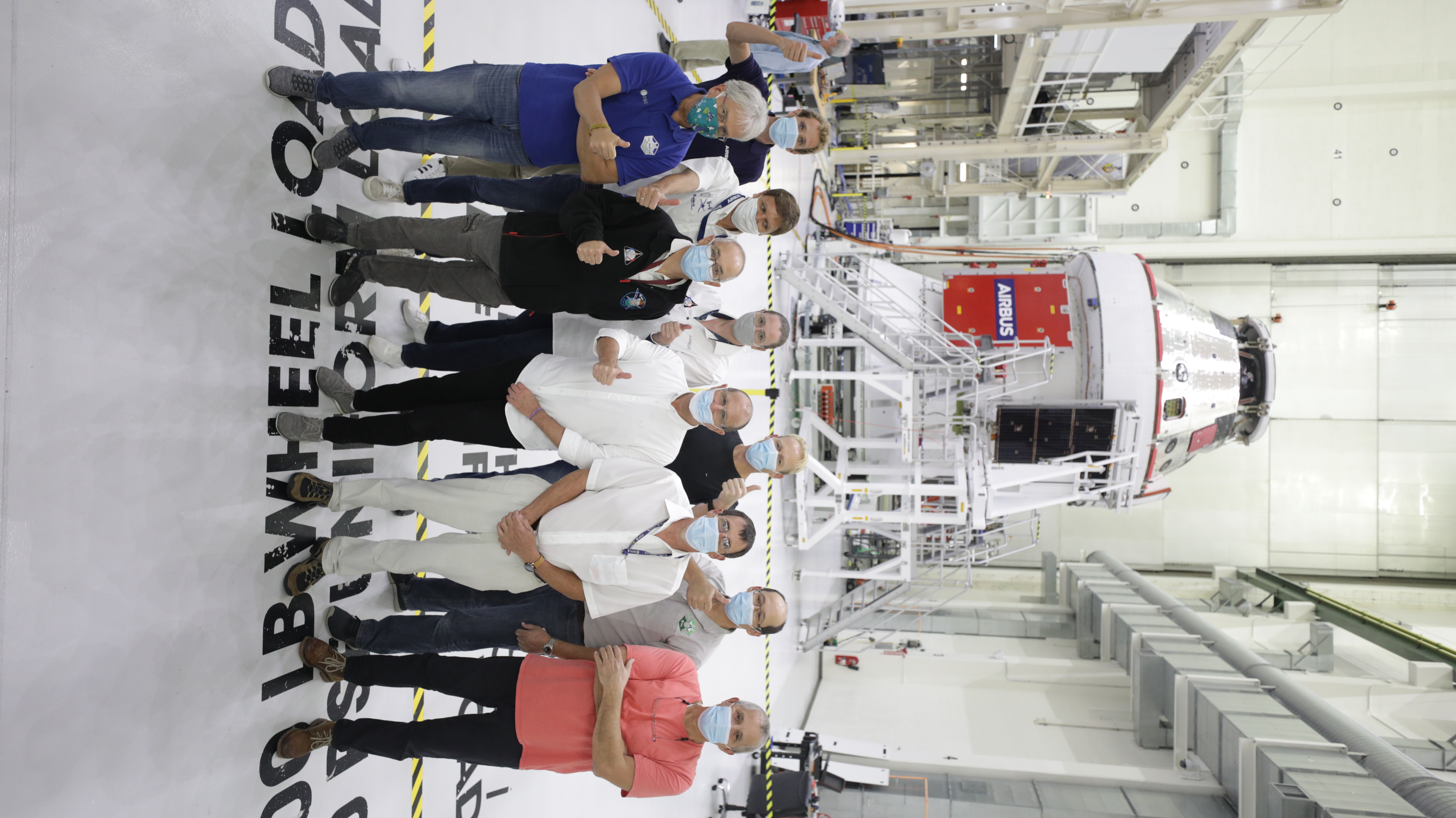 Members of the European Service Module processing team from the European Space Agency, Airbus, and Airbus Netherlands are shown with Orion’s solar array wings installed on the spacecraft for Artemis I inside the Neil Armstrong Operations and Checkout Building high bay at NASA’s Kennedy Space Center in Florida on Sept. 30, 2020. The solar arrays were extended, inspected, and then retracted, before installation on the spacecraft. Each solar array panel will generate 11 kilowatts of power and span about 63 feet. The array is a component of Orion’s service module, which is provided by the European Space Agency and built by Airbus Defence and Space to supply Orion’s power, propulsion, air and water. The first in a series of increasingly complex missions, Artemis I will test the Orion spacecraft and Space Launch System as an integrated system ahead of crewed flights to the Moon. Under the Artemis program, NASA will land the first woman and the next man on the Moon in 2024.