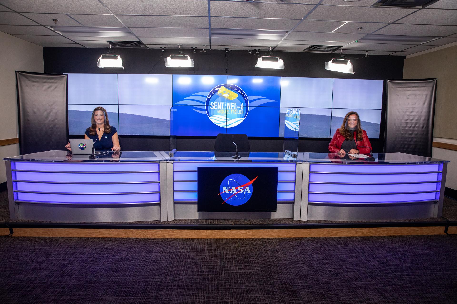 Marina Jurica of NASA’s Jet Propulsion Laboratory in Pasadena, left, and Karen St. Germain, director of the agency’s Earth Science Division, participate in a science briefing for the Sentinel-6 Michael Freilich mission at Vandenberg Air Force Base in California on Nov. 20, 2020. The Sentinel-6/Jason-CS (Continuity of Service) mission consists of the Sentinel-6 Michael Freilich satellite, which will be followed by its twin, the Sentinel-6B satellite, in 2025. The Sentinel-6/Jason-CS mission is part of Copernicus, the European Union’s Earth observation program, managed by the European Commission. Continuing the legacy of the Jason series missions, Sentinel-6/Jason-CS will extend the records of sea level into their fourth decade, collecting accurate measurements of sea surface height for more than 90% of the world’s seas, and providing crucial information for operational oceanography, marine meteorology, and climate studies. Sentinel-6 Michael Freilich launched Nov. 21, 2020, at 9:17 PST (12:17 EST). NASA’s Launch Services Program at Kennedy Space Center was responsible for launch management.