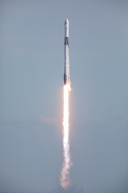 A SpaceX Falcon 9 rocket soars into the sky after lifting off from Launch Complex 39A at Kennedy Space Center in Florida at 11:17 a.m. EST on Dec. 6, 2020. The rocket is carrying the uncrewed cargo Dragon spacecraft on its journey to the International Space Station for NASA and SpaceX’s 21st Commercial Resupply Services (CRS-21) mission. Dragon will deliver more than 6,400 pounds of science investigations and cargo to the orbiting laboratory. The mission marks the first launch for SpaceX under NASA’s CRS-2 contract.