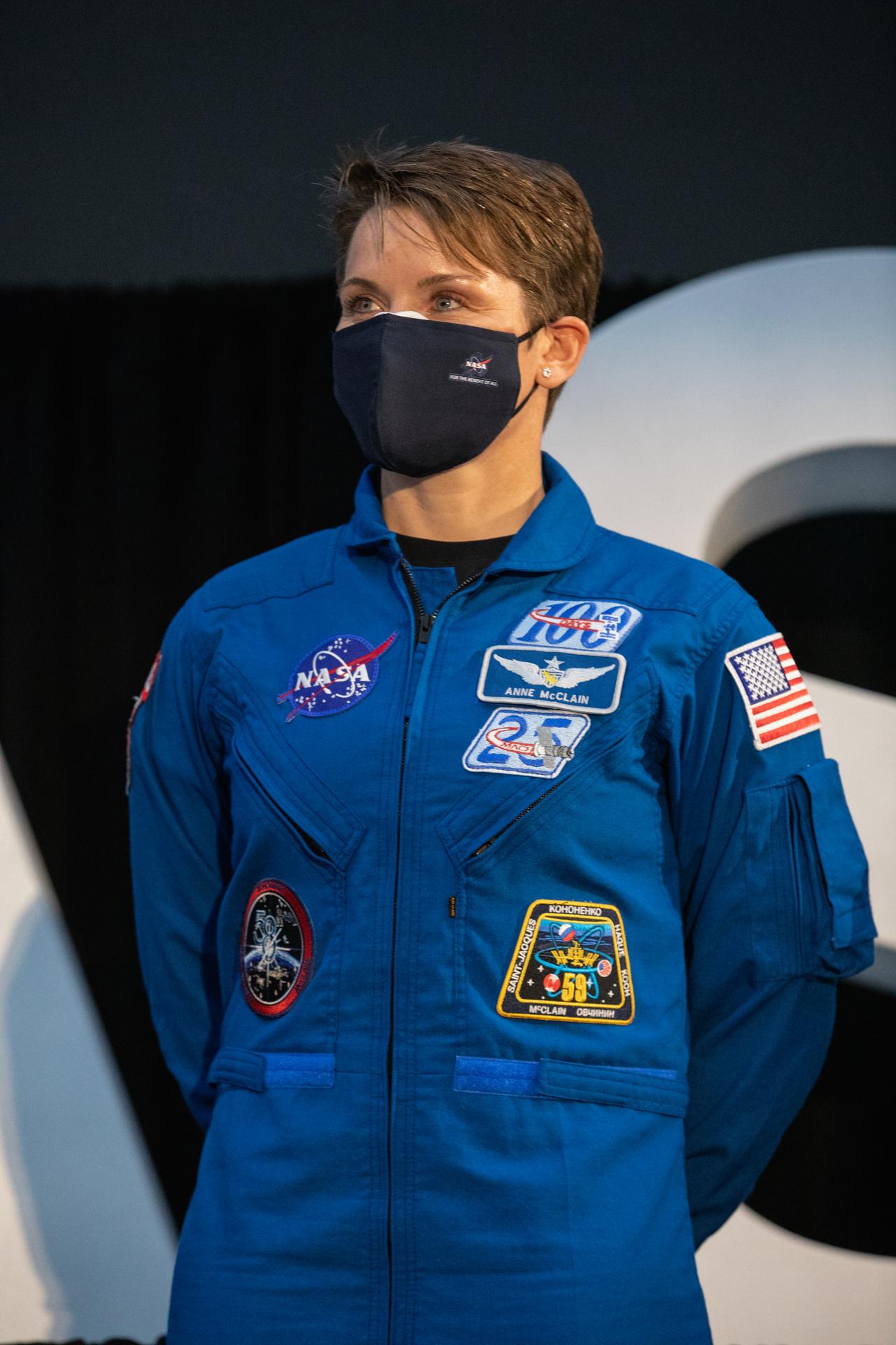 NASA astronaut Anne McClain attends an announcement Dec. 9, 2020, that she is one of the initial team of 18 astronauts eligible for early Artemis missions on and around the Moon. A Washington native, McClain was selected as a NASA astronaut in 2013 and has spent 204 days in space on one previous flight. Joining her at the event were fellow astronauts Joseph Acaba, Matthew Dominick, Jessica Meir, and Jessica Watkins. Vice President Mike Pence made the announcement at the close of a National Space Council meeting he chaired in the Apollo/Saturn V Center at the Kennedy Space Center Visitor Complex in Florida. Under the Artemis program, NASA will land the first woman and the next man on the Moon in 2024.