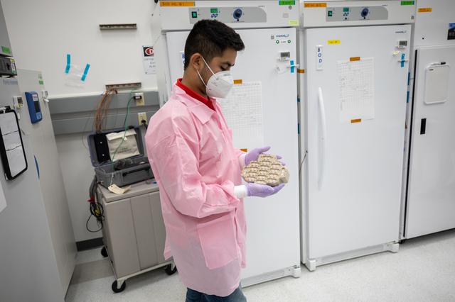 A member of the cold stowage team unpacks science experiments inside the Space Station Processing Facility at NASA’s Kennedy Space Center in Florida on Jan. 14, 2021. The experiments returned to Earth on SpaceX’s 21st commercial resupply services mission (CRS-21). Making its successful parachute-assisted splashdown west of Tampa off the Florida coast, at 8:26 p.m. EST on Jan. 13, the SpaceX cargo Dragon returned more than 4,400 pounds of scientific experiments and other cargo from the International Space Station. After splashdown, SpaceX loaded Dragon aboard their Go Navigator recovery ship and packed an Airbus H225 helicopter with the time-sensitive research cargo for delivery to Kennedy. The upgraded cargo Dragon capsule also boasts double the powered locker capacity to preserve science samples, allowing for a significant increase in the research that can be carried back to Earth.