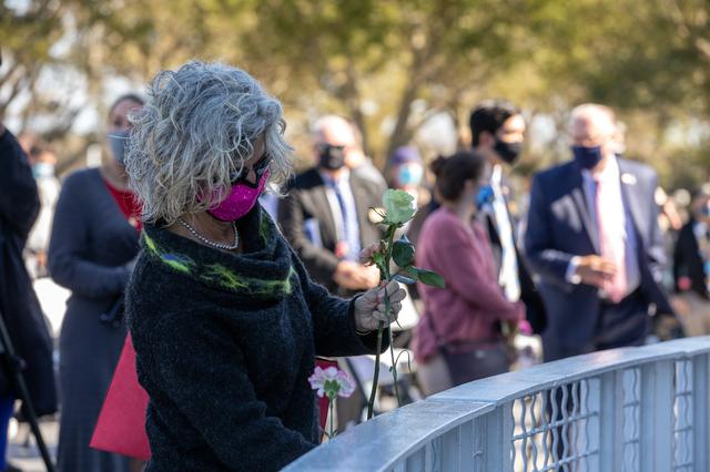 The crews of Apollo 1 and space shuttles Challenger and Columbia, as well as other fallen astronauts who lost their lives in the name of space exploration and discovery, are honored by NASA Kennedy Space Center employees and guests with a ceremony at the Kennedy Visitor Complex’s Space Mirror Memorial on Jan. 28, 2021. The date marked the 35th anniversary of the Challenger tragedy. NASA centers throughout the country participate in the agency’s annual Day of Remembrance memorial event.