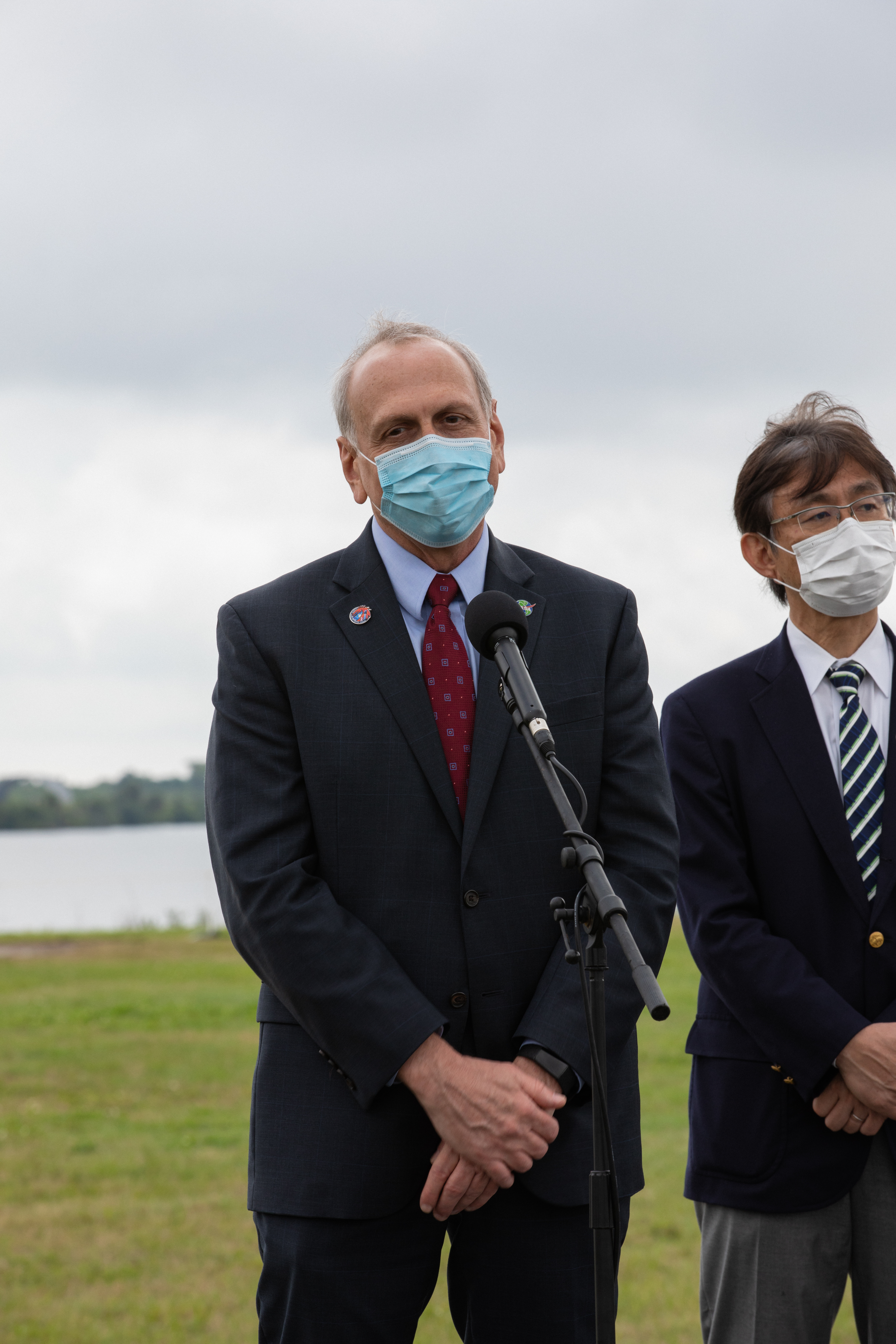 Acting NASA Administrator Steve Jurczyk speaks during a NASA Social Facebook Live event April 21, 2021, near the Press Site countdown clock at Kennedy Space Center in Florida, ahead of the agency’s SpaceX Crew-2 launch. NASA astronauts Shane Kimbrough and Megan McArthur, JAXA astronaut Akihiko Hoshide, and ESA astronaut Thomas Pesquet will fly on Crew-2, the second crew rotation mission to the International Space Station as part of NASA’s Commercial Crew Program. They will launch aboard SpaceX’s Crew Dragon spacecraft, named Endeavour, powered by the company’s Falcon 9 rocket. Liftoff is set for Friday, April 23, at 5:49 a.m. EDT.