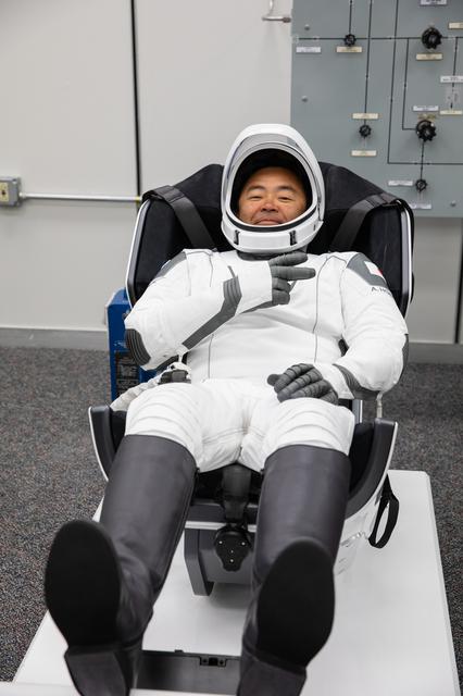 JAXA astronaut Akihiko Hoshide is seated inside the crew suit-up room in the Neil Armstrong Operations and Checkout Building at NASA’s Kennedy Space Center in Florida, on April 23, 2021. Hoshide, along with NASA astronauts Megan McArthur and Shane Kimbrough, and ESA astronaut Thomas Pesquet, will head to the International Space Station on NASA’s SpaceX Crew-2 mission. SpaceX’s Crew Dragon Endeavour will launch on the company’s Falcon 9 rocket from Kennedy’s Launch Complex 39A today at 5:49 a.m. EDT.