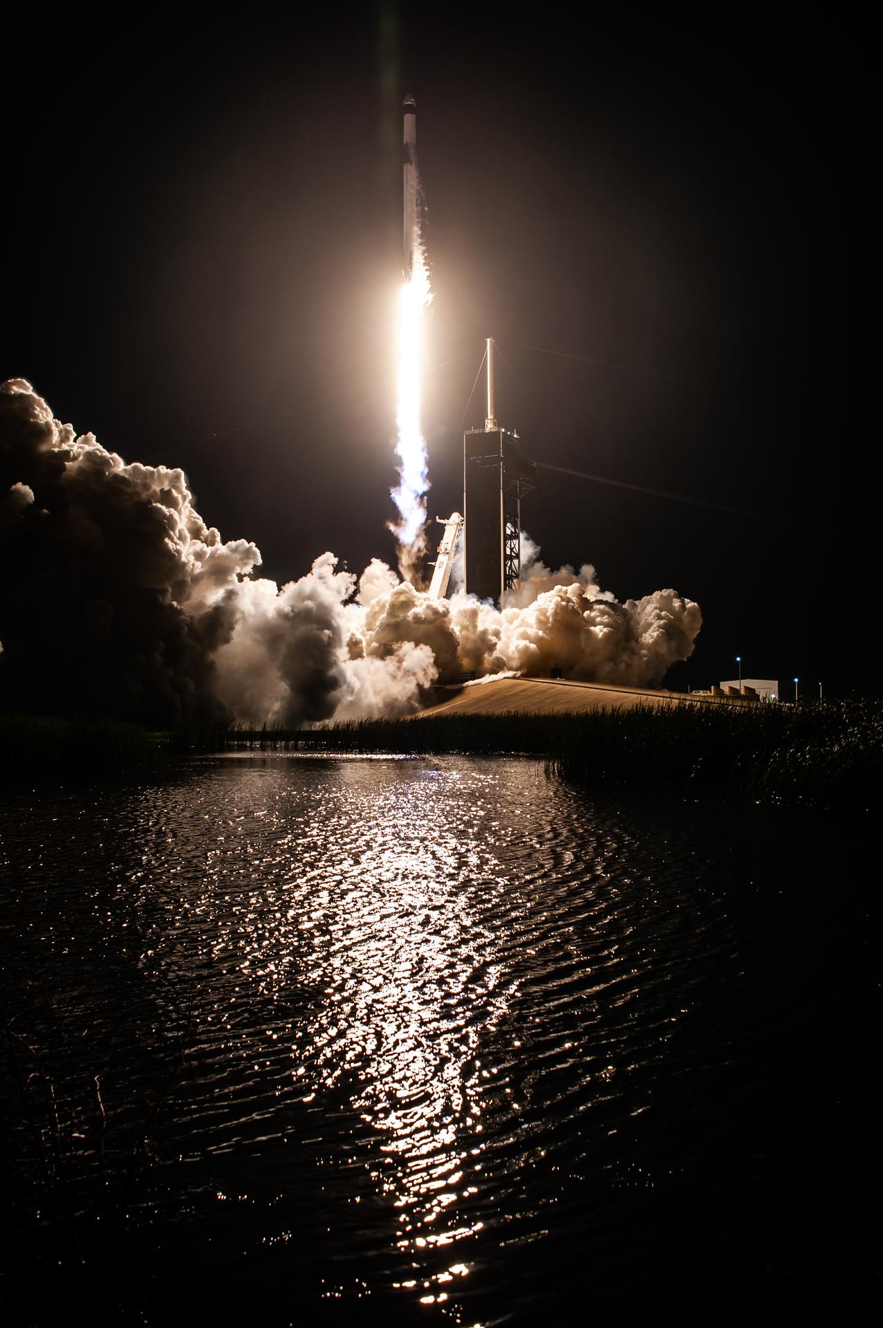 A SpaceX Falcon 9 rocket lifts off at 5:49 a.m. EDT from Launch Complex 39A at NASA’s Kennedy Space Center in Florida on April 23, 2021, carrying the company’s Crew Dragon Endeavour. Onboard the capsule are NASA astronaut Shane Kimbrough, spacecraft commander; NASA astronaut Megan McArthur, pilot; ESA astronaut Thomas Pesquet, mission specialist; and JAXA astronaut Akihiko Hoshide, mission specialist. NASA’s SpaceX Crew-2 mission crew will dock to Harmony module’s forward-facing international docking adapter of the International Space Station Saturday, April 24, at 5:10 a.m.