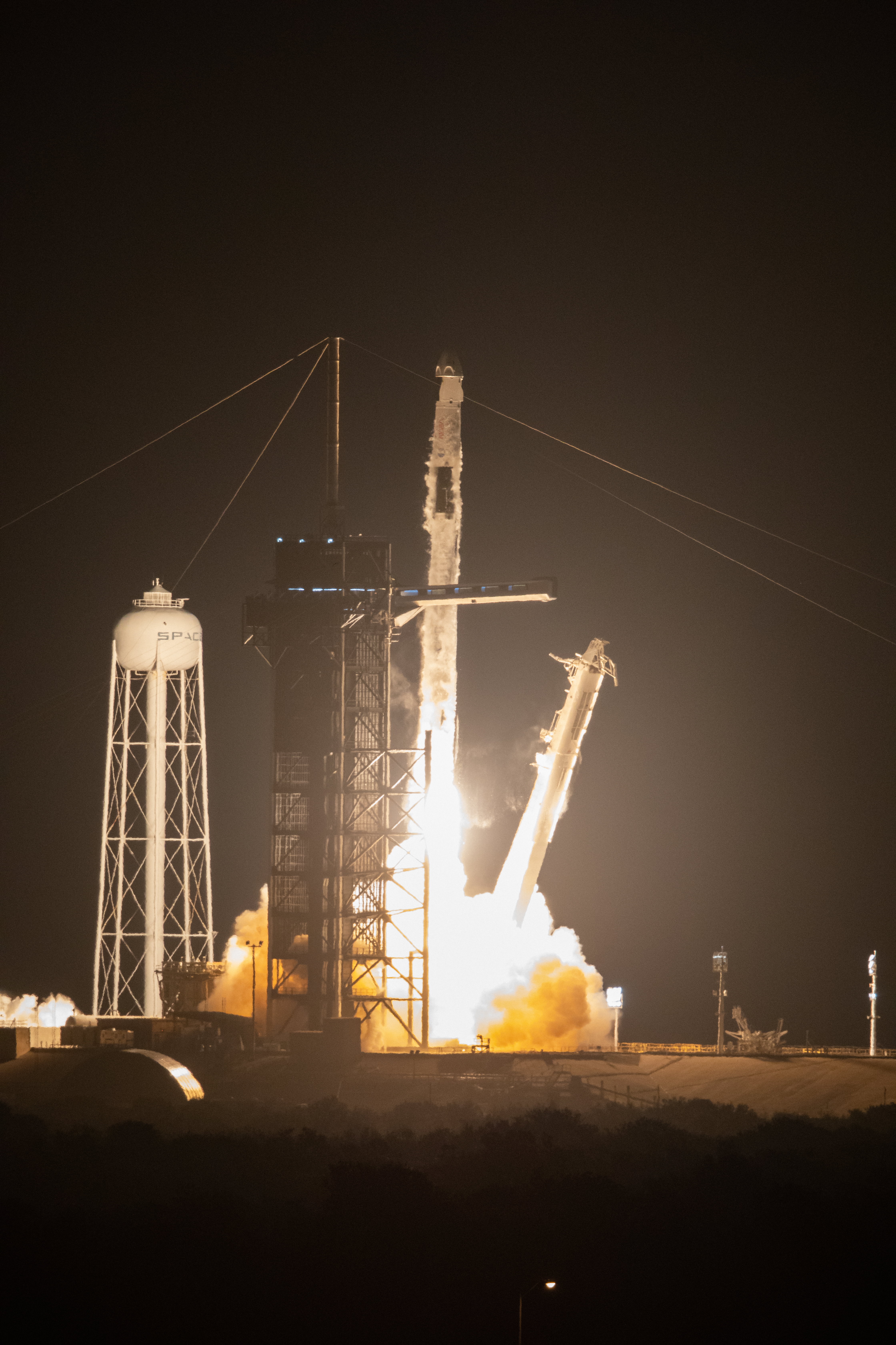 A SpaceX Falcon 9 rocket lifts off at 5:49 a.m. EDT from Launch Complex 39A at NASA’s Kennedy Space Center in Florida on April 23, 2021, carrying the company’s Crew Dragon Endeavour. Onboard the capsule are NASA astronaut Shane Kimbrough, spacecraft commander; NASA astronaut Megan McArthur, pilot; ESA astronaut Thomas Pesquet, mission specialist; and JAXA astronaut Akihiko Hoshide, mission specialist. NASA’s SpaceX Crew-2 mission crew will dock to the Harmony module’s forward-facing international docking adapter of the International Space Station on Saturday, April 24, at 5:10 a.m.