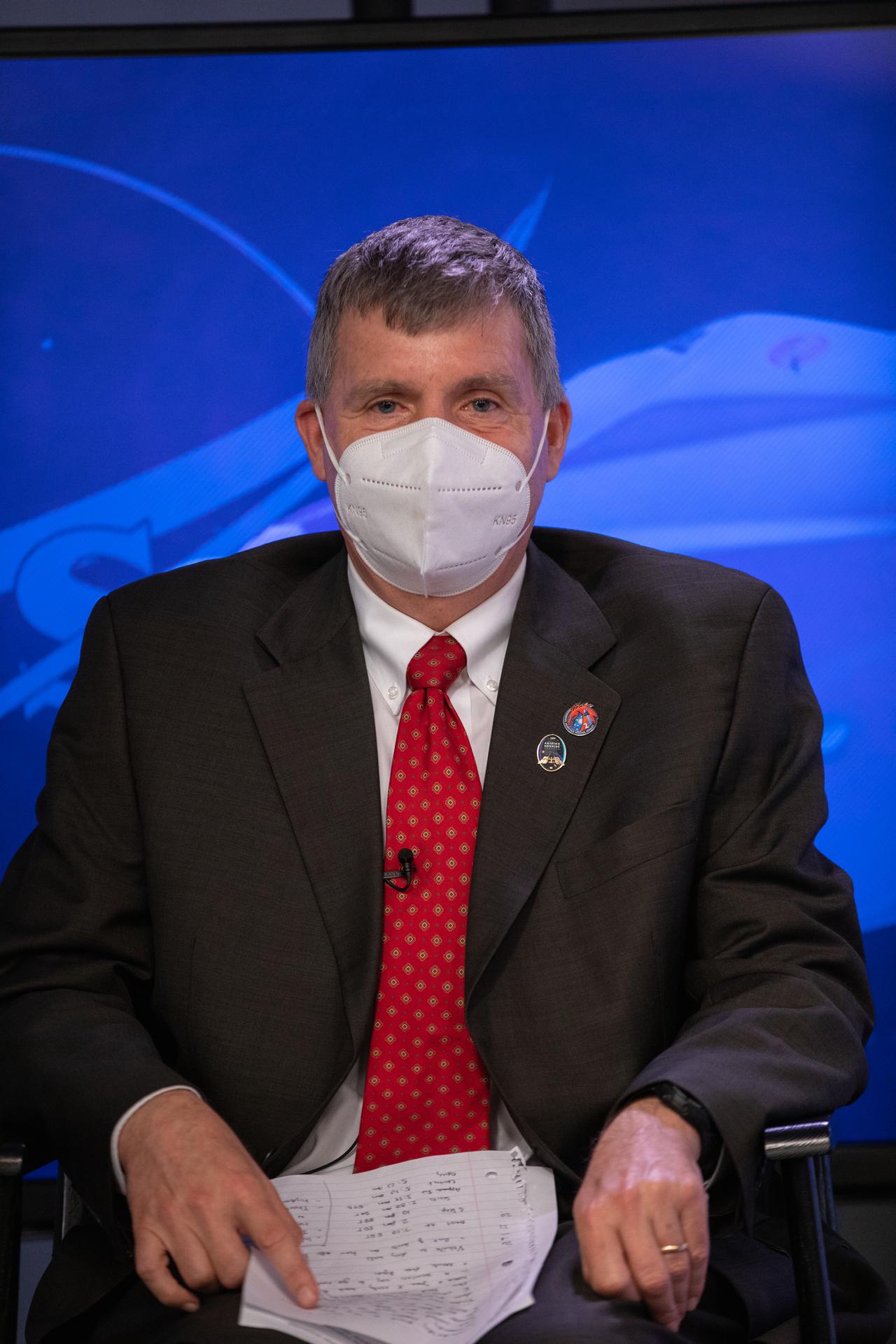 Steve Stich, manager, Commercial Crew Program, NASA’s Kennedy Space Center, participates in a postlaunch news conference for NASA’s SpaceX Crew-2 mission on April 23, 2021, at Kennedy Space Center in Florida. Liftoff time on a Falcon 9 rocket was at 5:49 p.m. EDT. Crew Dragon Endeavour is carrying NASA astronaut Shane Kimbrough, spacecraft commander; NASA astronaut Megan McArthur, pilot; ESA astronaut Thomas Pesquet, mission specialist; and JAXA astronaut Akihiko Hoshide, mission specialist, to the International Space Station. Crew-2 is the second regular crew mission of a U.S. commercial spacecraft with astronauts to the space station as part of NASA’s Commercial Crew Program. Endeavour will dock with the station and the crew will remain on the orbiting laboratory for a six-month science mission.