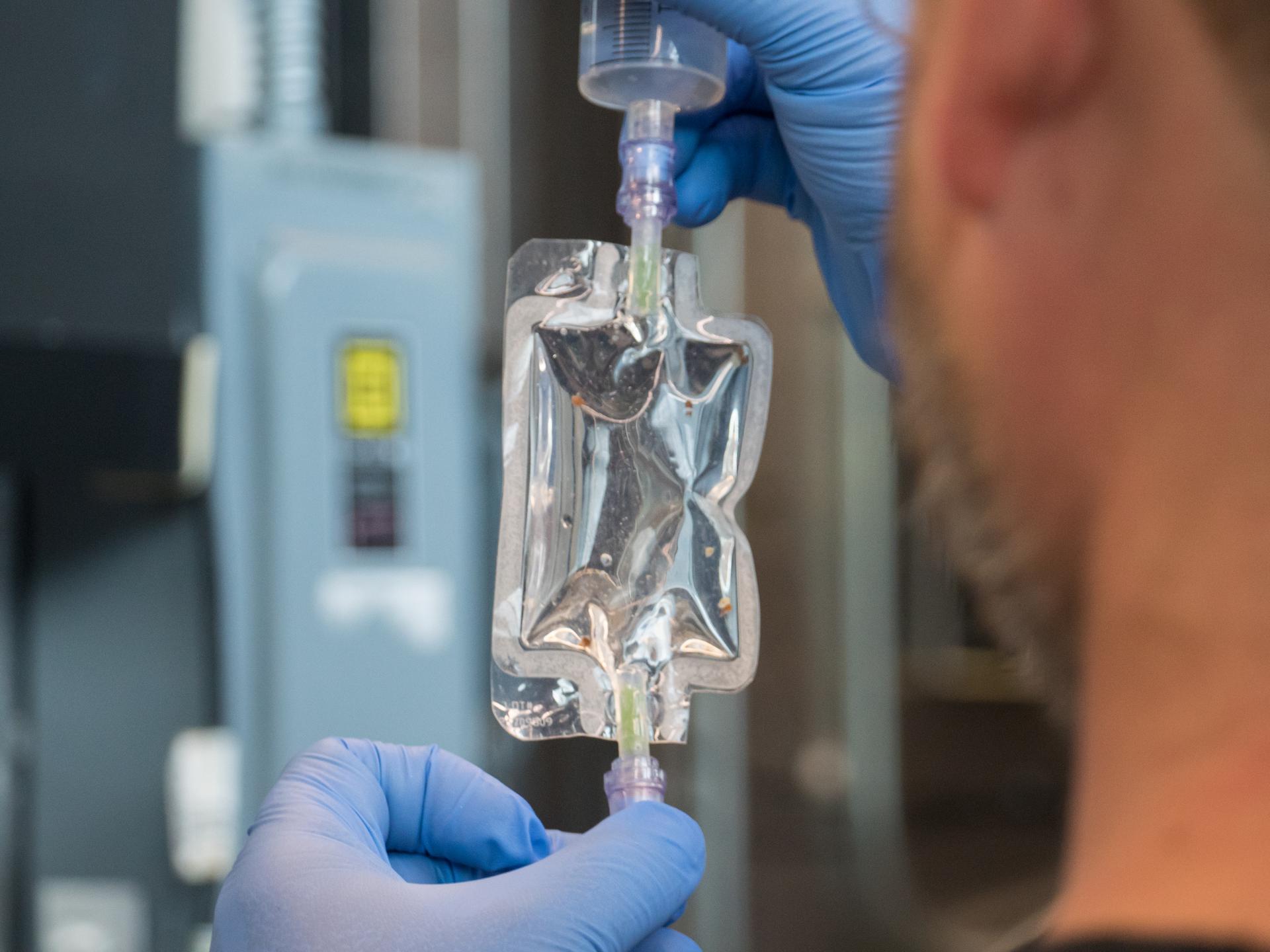 Inside the Space Life Sciences Laboratory at NASA’s Kennedy Space Center in Florida, Dr. Eric Koch, a postdoctoral fellow at the University of Florida, demonstrates preparations for bobtail squid on May 20, 2021, for a trip to the International Space Station aboard SpaceX’s 22nd Commercial Resupply Services mission. The experiment will examine the effects of spaceflight on the molecular and chemical interactions between beneficial microbes and their animal hosts. Amimals, including humans, rely on microbes to maintain a healthy digestive and immune system. UMAMI is one of several experiments bound for the space station in the Dragon capsule atop the SpaceX Falcon 9 rocket. The mission is scheduled to lift off from Launch Complex 39A on June 3.