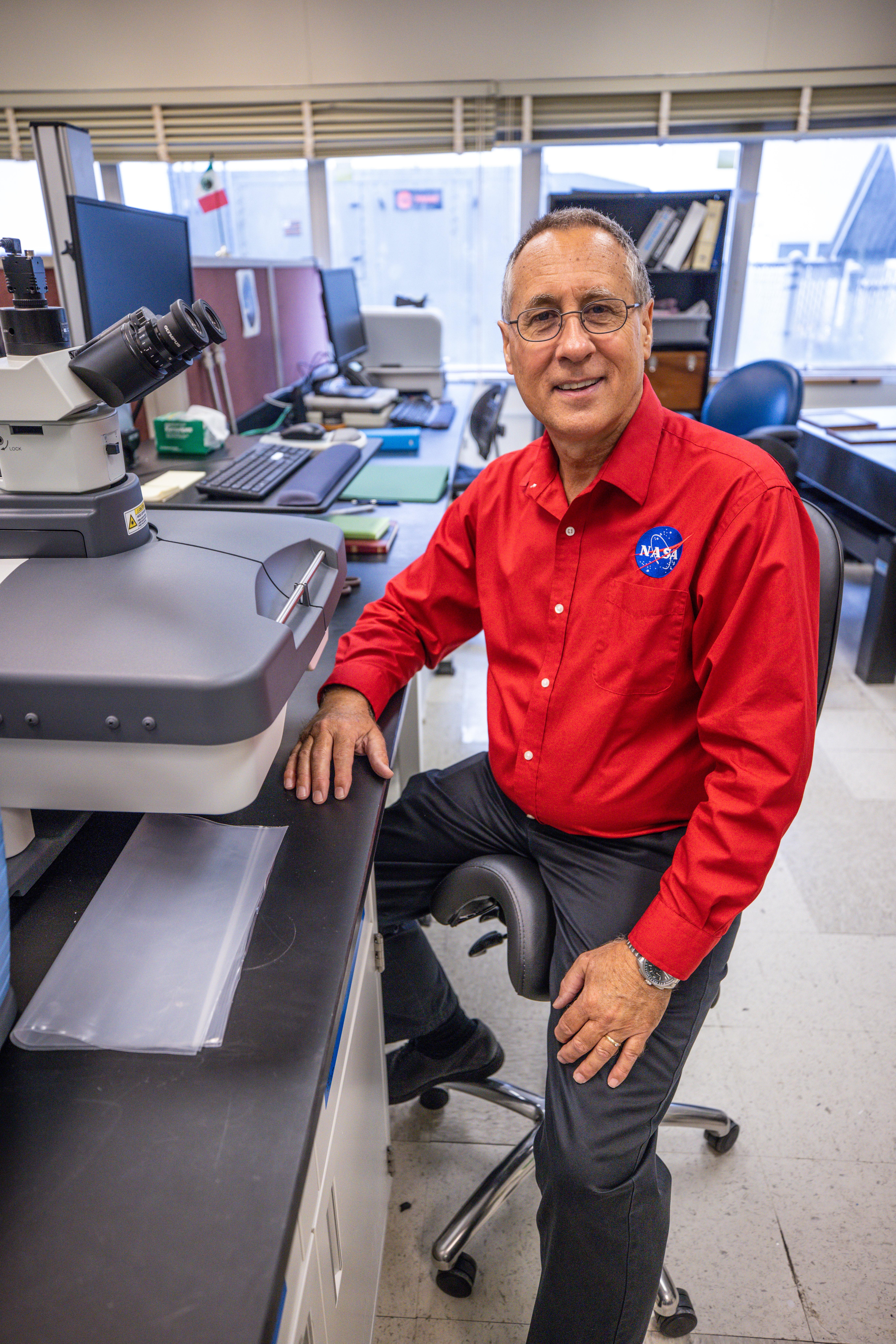 Lead chemist Philip Howard poses for a photo inside NASA Engineering’s Analytical Laboratories at Kennedy Space Center in Florida on July 7, 2021. One of seven branches in the NASA Laboratories, Development, and Testing Division, the Analytical Laboratories branch provides microscopic imagery and analysis through the use of a wide variety of microscopic techniques to identify contaminants and other urgent problems associated with aerospace flight hardware, ground support equipment, and related facilities.