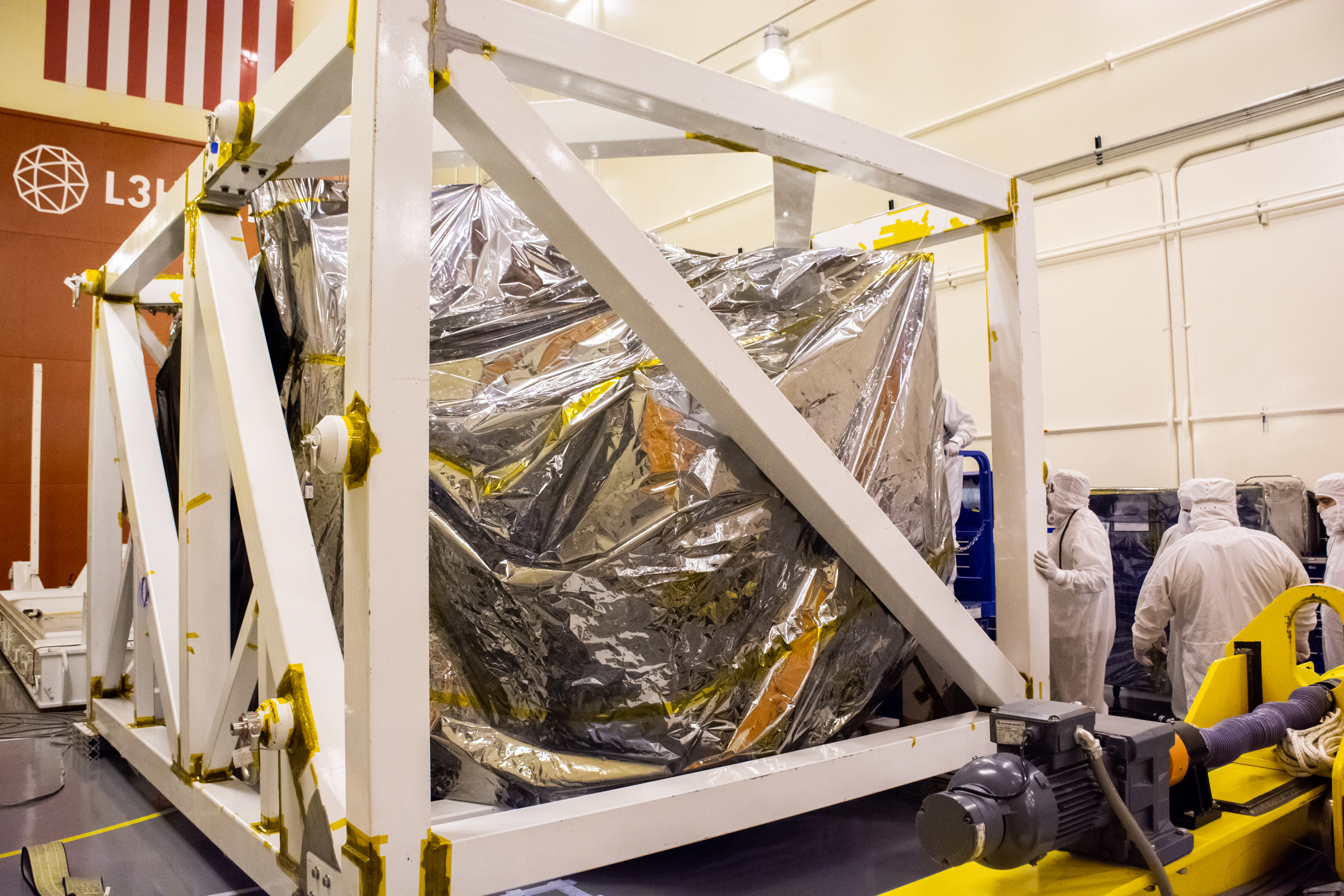 Technicians check the Landsat 9 spacecraft secured in its protective stand on the floor of the Integrated Processing Facility at Vandenberg Space Force Base in California, on July 8, 2021. Landsat 9 is being prepared for its launch atop the ULA Atlas V from Vandenberg in September 2021. The launch is being managed by NASA’s Launch Services Program based at Kennedy Space Center in Florida. Landsat 9 will continue the nearly 50-year legacy of previous Landsat missions. It will monitor key natural and economic resources from orbit. Landsat 9 is managed by the agency’s Goddard Space Flight Center in Greenbelt, Maryland. It will carry two instruments: the Operational Land Imager 2, which collects images of Earth’s landscapes in visible, near-infrared and shortwave infrared light, and the Thermal Infrared Sensor 2, which measures the temperature of land surfaces. Like its predecessors, Landsat 9 is a joint mission between NASA and the U.S. Geological Survey.