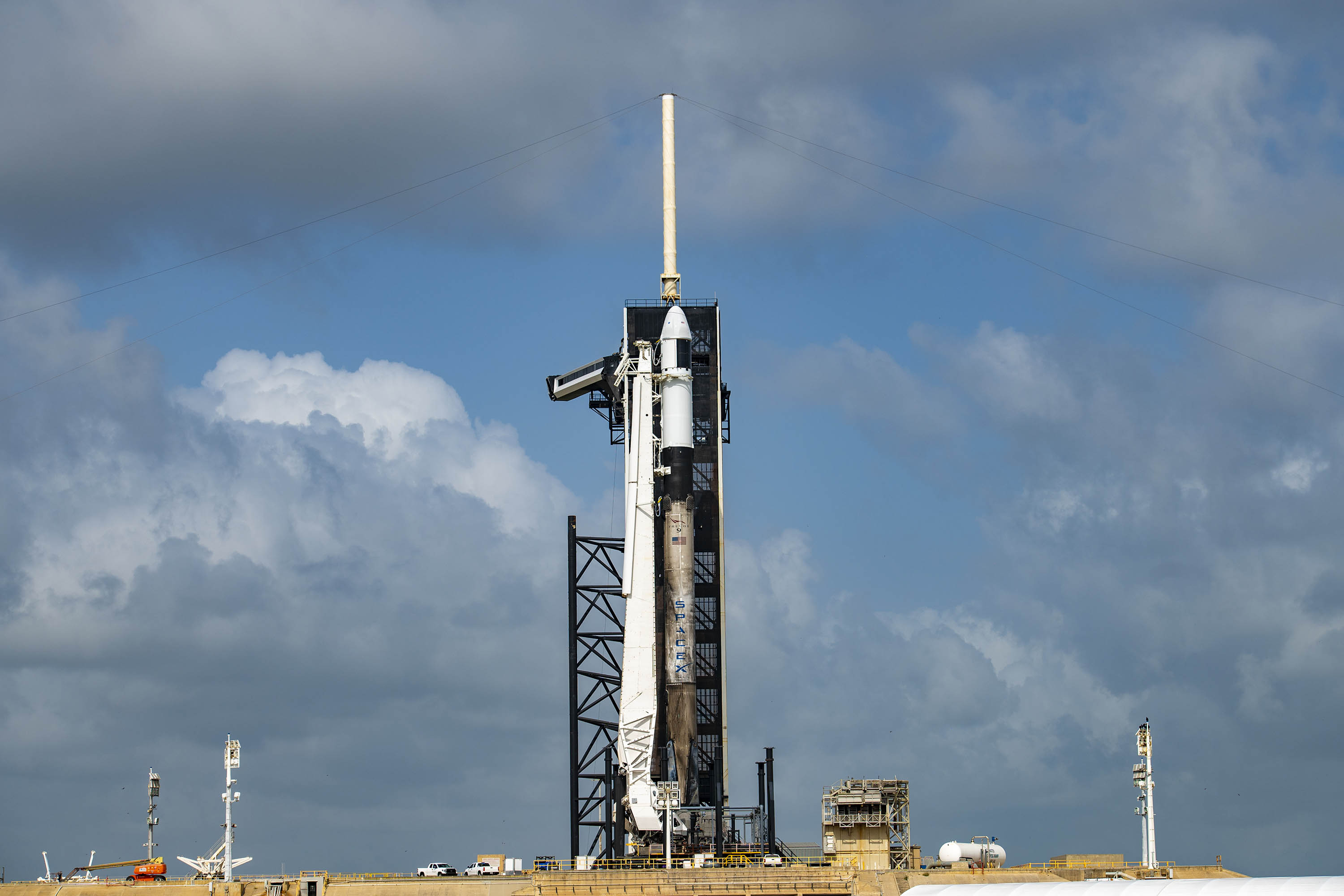 A SpaceX Falcon 9 rocket, with the company’s uncrewed Dragon spacecraft atop, is raised to a vertical position at NASA Kennedy Space Center’s Launch Complex 39A on Aug. 25, 2021, in preparation for the 23rd commercial resupply services launch to the International Space Station. The mission will deliver new science investigations, supplies, and equipment to the crew aboard the orbiting laboratory. Liftoff is scheduled for 3:37 a.m. EDT on Saturday, Aug. 28.