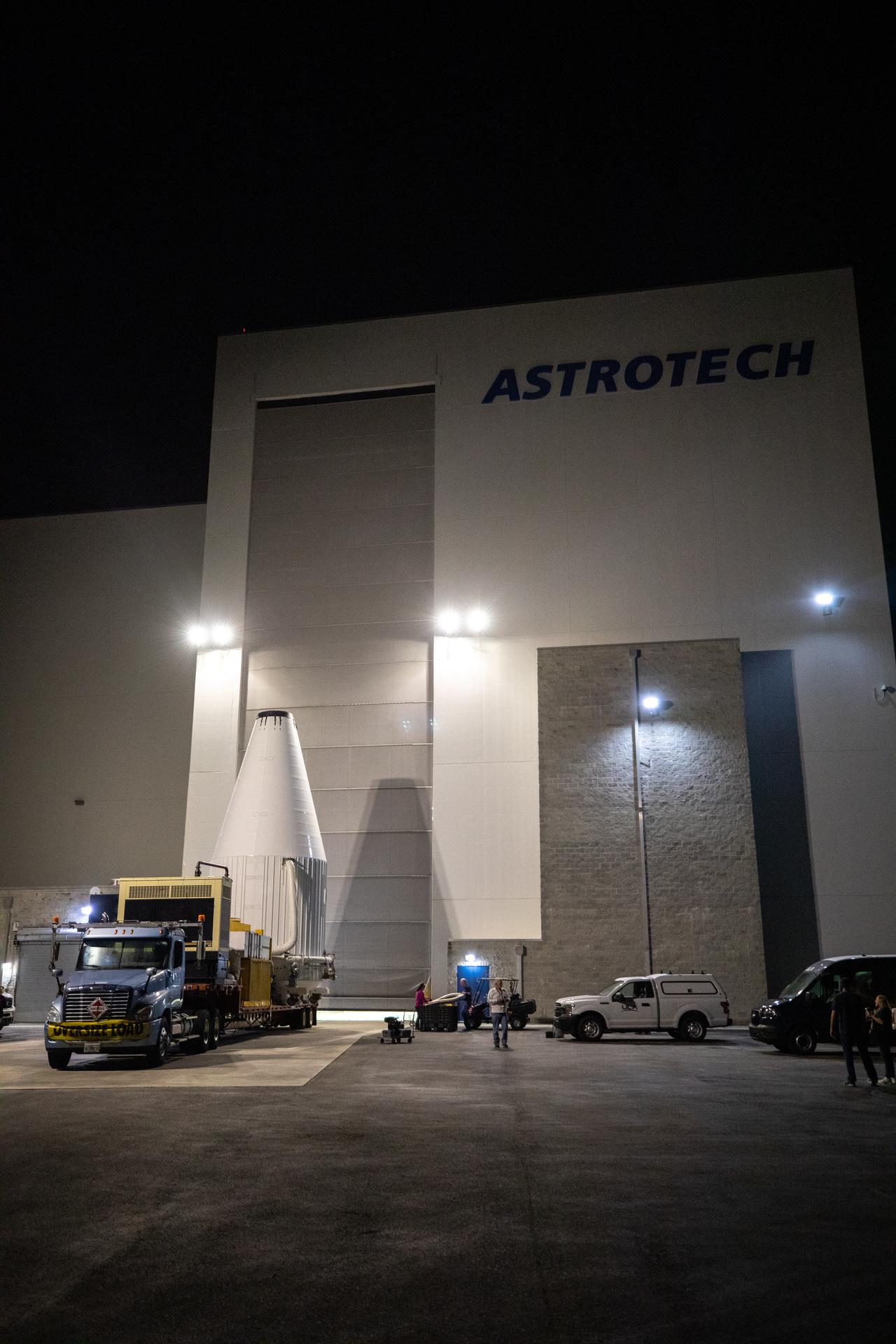 The Lucy spacecraft, encapsulated in its payload fairing, exits the Astrotech Space Operations Facility in Titusville, Florida on Oct. 7, 2021. The spacecraft will be transported to nearby Space Launch Complex 41 at Cape Canaveral Space Force Station. The encapsulated spacecraft will be hoisted up and into the Vertical Integration Facility where it will be lowered down and secured on the United Launch Alliance (ULA) Atlas V Centaur second stage. Lucy is scheduled to launch no earlier than Saturday, Oct. 16, on the ULA Atlas V 401 rocket from Launch Pad 41. NASA’s Launch Services Program, based at Kennedy Space Center, America’s premier multi-user spaceport, is managing the launch. Over its 12-year primary mission, Lucy will explore a record-breaking number of asteroids, flying by one asteroid in the solar system’s main belt and seven Trojan asteroids. Additionally, Lucy’s path will circle back to Earth three times for gravity assists, making it the first spacecraft ever to return to the vicinity of Earth from the outer solar system.
