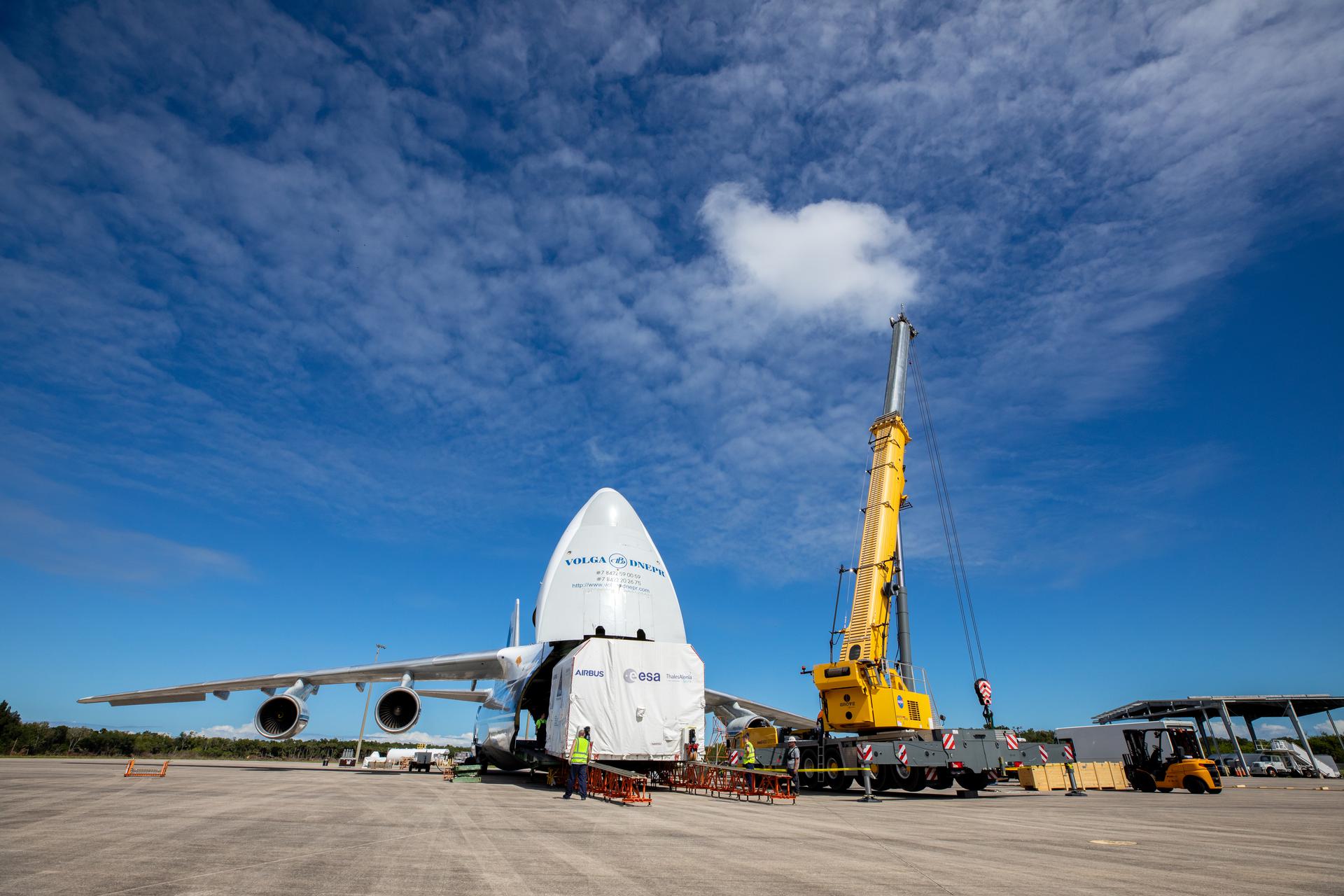 The European Service Module (ESM) for NASA’s Orion spacecraft arrived at the Launch and Landing Facility at NASA’s Kennedy Space Center in Florida on Thursday, Oct. 14, 2021, and was offloaded. Making the journey from the Airbus Facility in Bremen, Germany, aboard a Russian Antonov aircraft, the ESM will be transferred to Kennedy’s Neil A. Armstrong Operations and Checkout Facility. There, teams from NASA and Lockheed Martin will integrate the service module with the crew module adapter and crew module, already housed in the facility. The powerhouse that will fuel and propel Orion in space, the ESM will be used for Artemis II, the first Artemis mission flying crew aboard Orion. Teams with the European Space Agency and Airbus built the service module.