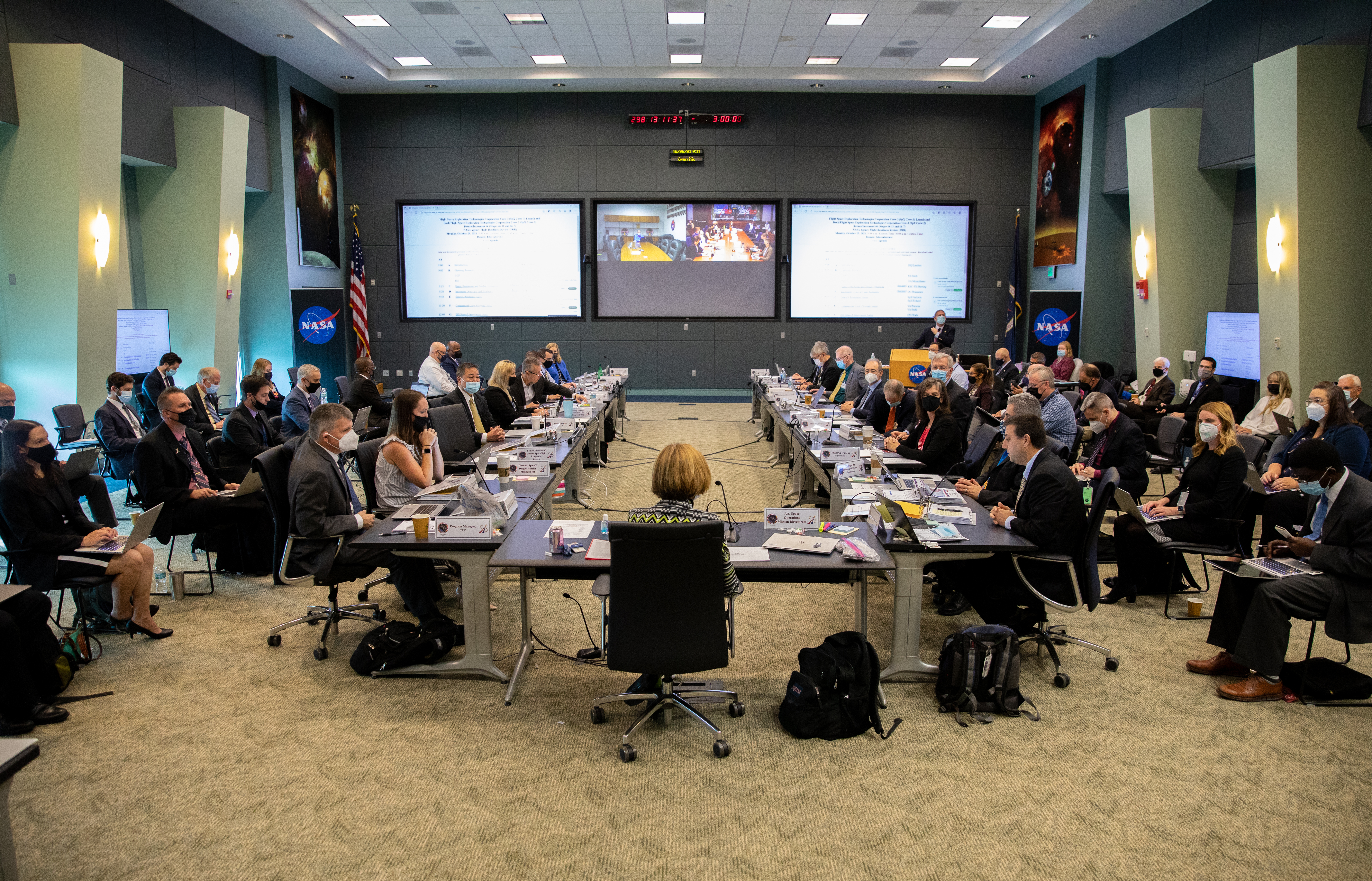 NASA and SpaceX managers participate in a Flight Readiness Review for the agency’s SpaceX Crew-3 mission at Kennedy Space Center in Florida on Oct. 25, 2021. International partners also participated. Crew-3 is scheduled to launch to the International Space Station from Kennedy’s Launch Complex 39A on Oct. 31, 2021 as part of NASA’s Commercial Crew Program. Liftoff of the Falcon 9 rocket and Crew Dragon spacecraft is targeted for 2:21 a.m. EDT.