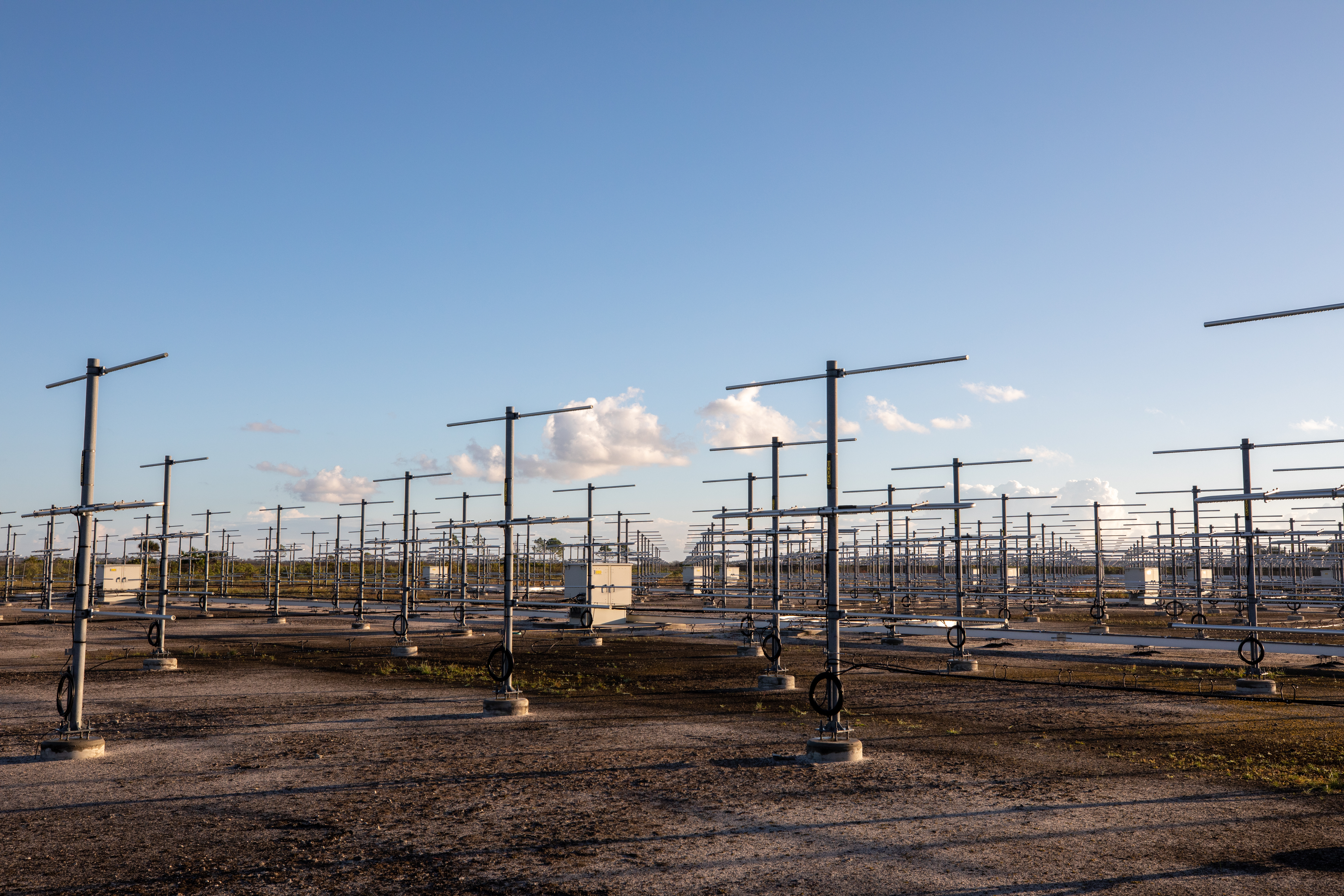 The Tropospheric Doppler Radar Wind Profiler, located on five acres near the Launch and Landing Facility at Kennedy Space Center in Florida, is shown during an Artemis I weather simulation on Nov. 3, 2021. The simulation involved teams from Kennedy, Cape Canaveral Space Force Station, Johnson Space Center in Texas, and Marshall Space Flight Center in Alabama. The radar wind profiler consists of 640 antennae and delivers data – from 6,000 to 62,000 feet – every five minutes. The instrument will be used as the primary upper level wind instrument for NASA’s Artemis missions, including Artemis I, the first launch of the agency’s Space Launch System rocket and the Orion spacecraft on a flight beyond the Moon.