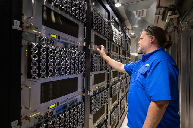 Weather Instrumentation Engineer Nick O’Connor works with the Tropospheric Doppler Radar Wind Profiler at Kennedy Space Center in Florida during an Artemis I weather simulation on Nov. 3, 2021. The simulation involved teams from Kennedy, Cape Canaveral Space Force Station, Johnson Space Center in Texas, and Marshall Space Flight Center in Alabama. The radar wind profiler delivers data – from 6,000 to 62,000 feet – every five minutes. It will be used as the primary upper level wind instrument for NASA’s Artemis missions, including Artemis I, the first launch of the agency’s Space Launch System rocket and the Orion spacecraft on a flight beyond the Moon.