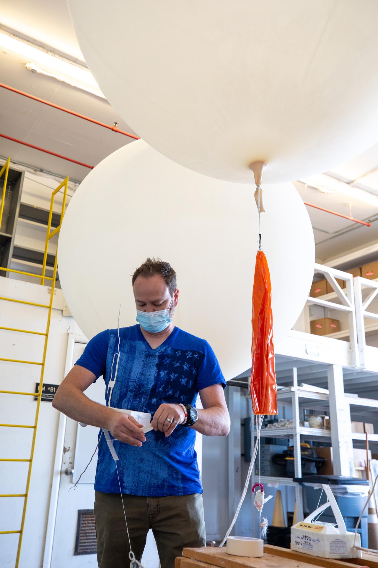 Meteorological Data Specialist Michael Boyer prepares weather balloons for release at the Cape Canaveral Space Force Station (CCSFS) Weather Station in preparation for an Artemis I weather simulation on Nov. 3, 2021. The event involved teams from CCSFS, Kennedy Space Center, Johnson Space Center in Texas, and Marshall Space Flight Center in Alabama. Weather balloons provided data below 6,000 feet and above 62,000 feet, while Kennedy’s Tropospheric Doppler Radar Wind Profiler delivered data from 6,000 to 62,000 feet. The radar wind profiler will be used as the primary upper level wind instrument for NASA’s Artemis missions, including Artemis I, the first launch of the agency’s Space Launch System rocket and the Orion spacecraft on a flight beyond the Moon.