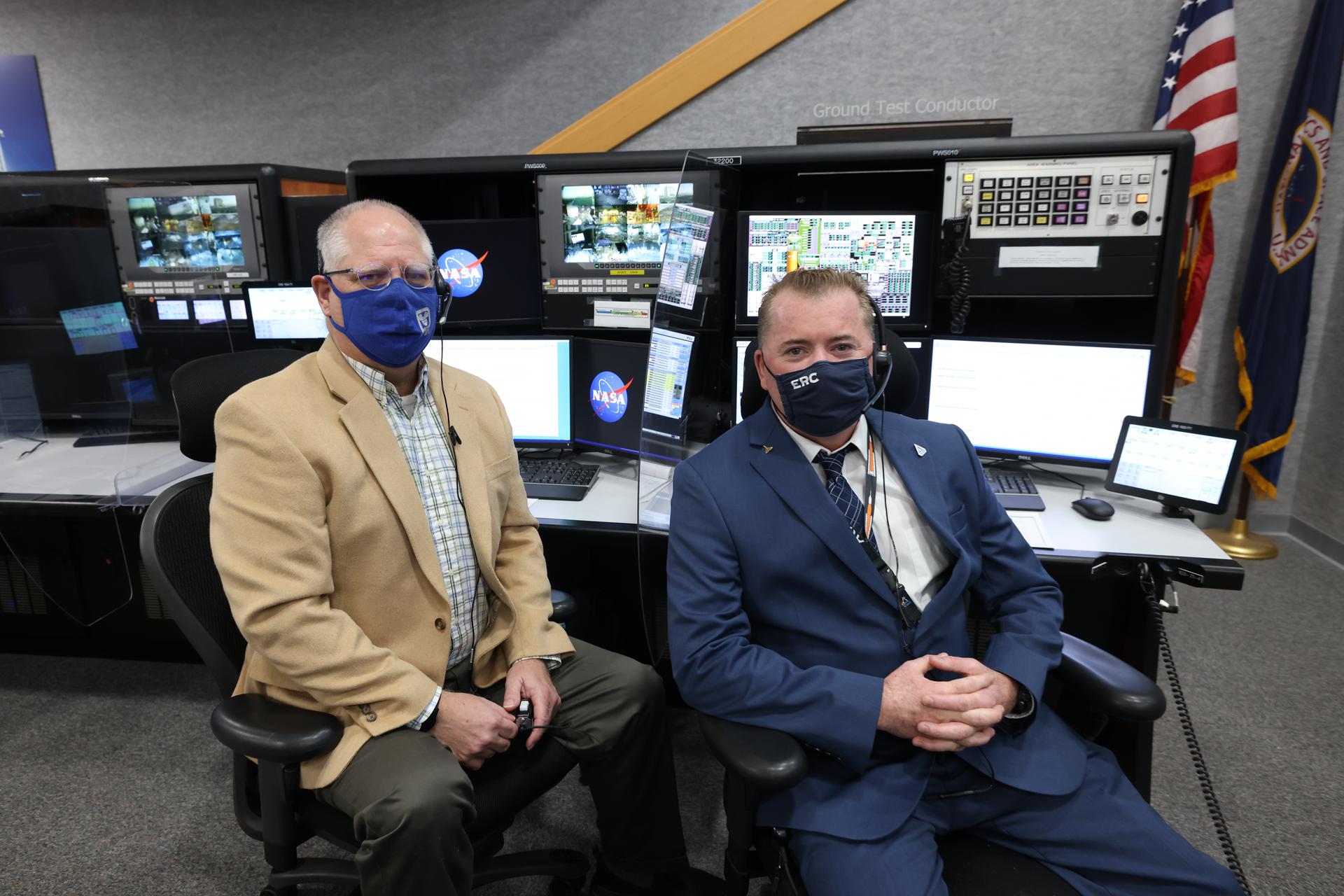 Launch team members are seated at the Ground Test Conductor consoles inside Firing Room 1 of the Launch Control Center at NASA’s Kennedy Space Center in Florida on Dec. 13, 2021. From left are Joe Vanhove and Keith Lawton. They are participating in a joint integrated simulation for the Artemis I launch that covered both cryogenic loading and terminal countdown portions of prelaunch activities. Members of NASA’s mission management team and launch team conducted the simulation together. The Kennedy team was certified for the Artemis I launch. During Artemis I, the agency’s Orion spacecraft will lift off from Kennedy aboard NASA’s most powerful rocket – the Space Launch System – to fly farther than any spacecraft built for humans has ever flown. Through NASA’s Artemis missions, the agency, along with commercial and international partners, will establish a sustainable human presence on the Moon to prepare for missions to Mars.