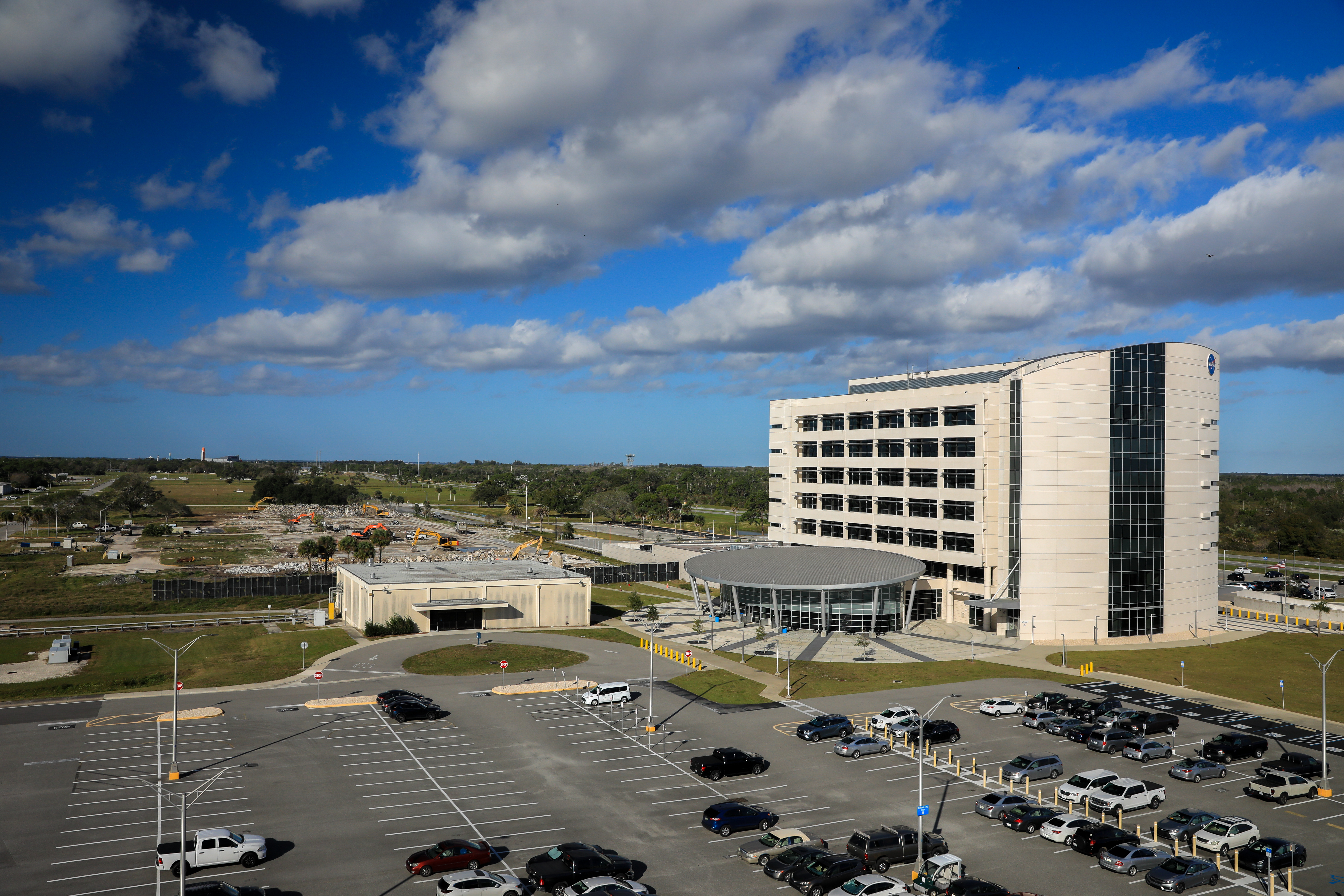 Shown is a view of the seven-story, 200,000-square-foot Central Campus Headquarters (CCHQ) Building at NASA’s Kennedy Space Center in Florida on Jan. 11, 2022. The CCHQ is a modernized, energy efficient facility representative of Kennedy’s transformation to America’s premier multi-user spaceport. It opened in May 2019. Built in 1965, the former headquarters building was recently demolished. The area previously occupied by the 439,000 square-foot-facility will be utilized as greenspace.