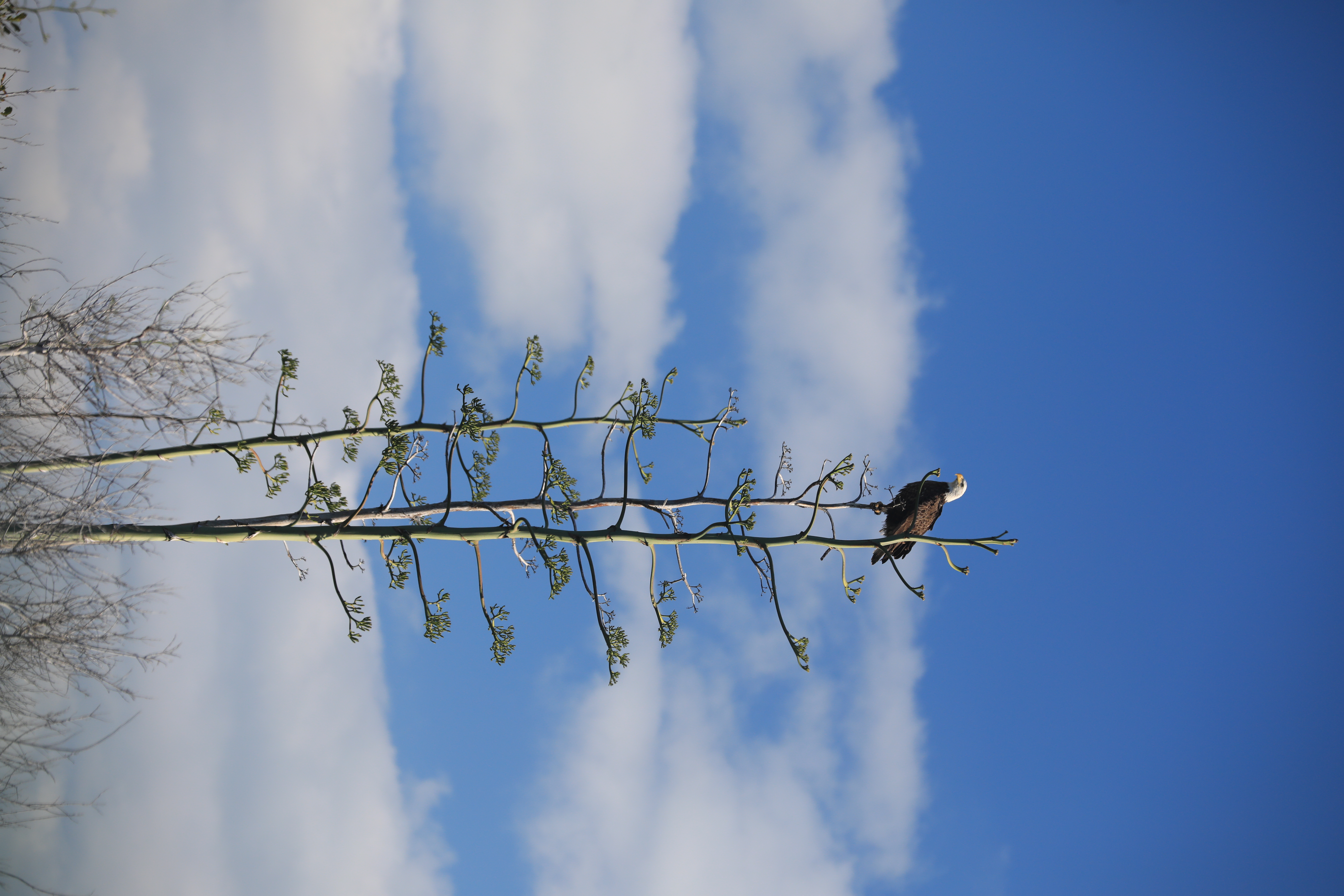 An American Bald Eagle perches majestically in a tree at NASA’s Kennedy Space Center in Florida on Jan. 18, 2022. The center shares a border with the Merritt Island National Wildlife Refuge. More than 330 native and migratory bird species call Kennedy and the wildlife refuge home.