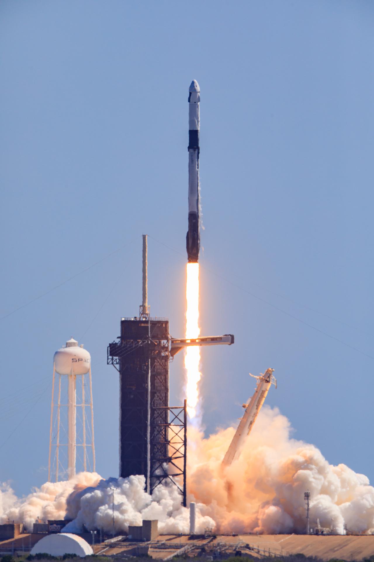 A SpaceX Falcon 9 rocket, carrying the company's Crew Dragon spacecraft, lifts off from Launch Complex 39A at NASA’s Kennedy Space Center in Florida at 11:17 a.m. EST on April 8, 2022, on Axiom Mission 1 (Ax-1). Commander Michael López-Alegría of Spain and the United States, Pilot Larry Connor of the United States, and Mission Specialists Eytan Stibbe of Israel, and Mark Pathy of Canada are aboard the flight to the International Space Station. The Ax-1 mission is the first private astronaut mission to the space station.