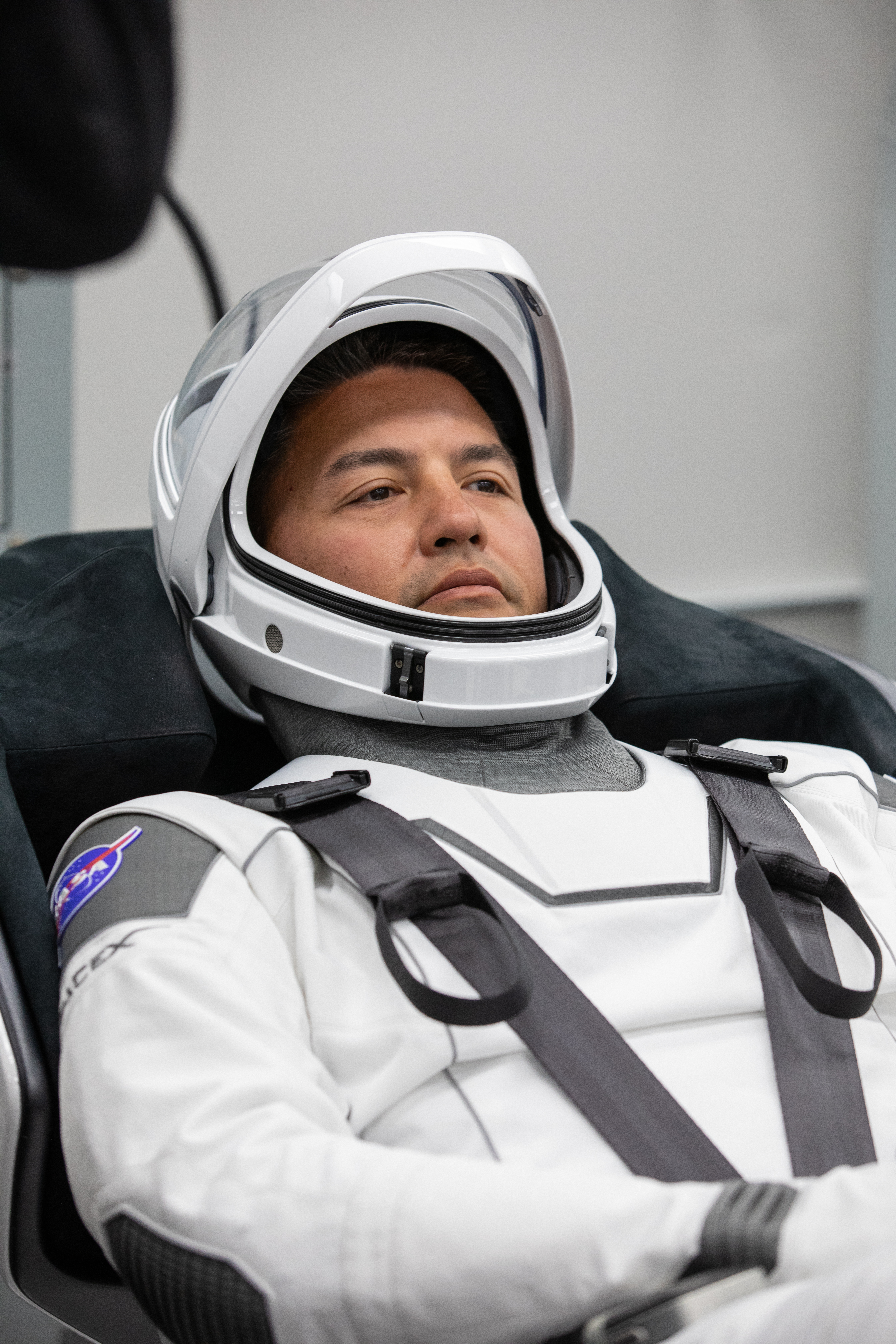 Crew-4 mission astronaut Kjell Lindgren relaxes in the suit room in the Astronaut Crew Quarters inside Kennedy Space Center’s Neil A. Armstrong Operations and Checkout Building on April 27, 2022. A team of SpaceX suit technicians assisted the crew as they put on their custom-fitted spacesuits and checked the suits for leaks. Lindgren, along with Samantha Cristoforetti, Bob Hines, and Jessica Watkins, will launch aboard SpaceX’s Crew Dragon, powered by the company’s Falcon 9 rocket, to the International Space Station as part of NASA’s Commercial Crew Program. Crew-4 is scheduled to lift off today at 3:52 a.m. EDT from Launch Complex 39A at Kennedy.