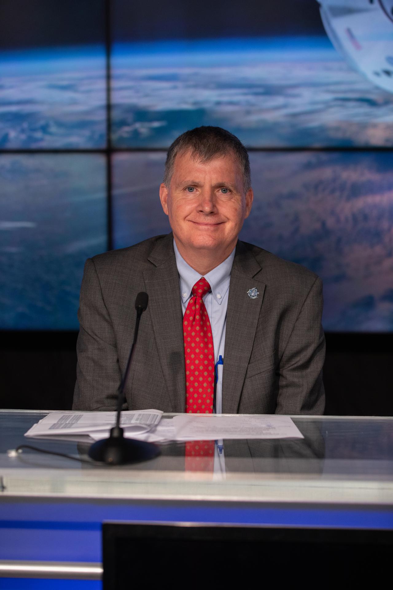 Steve Stich, manager, NASA’s Commercial Crew Program, participates in a Crew-4 postlaunch news conference April 27, 2022, at NASA’s Kennedy Space Center in Florida. The SpaceX Crew Dragon spacecraft, powered by the company’s Falcon 9 rocket, lifted off from Kennedy’s Launch Complex 39A at 3:52 a.m. EDT on April 27. Named Freedom by mission astronauts Kjell Lindgren, Bob Hines, Jessica Watkins, and Samantha Cristoforetti, Dragon is scheduled to dock to the space station today at 8:15 p.m. EDT.