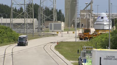 Boeing's CST-100 Starliner spacecraft rolls to ULA's Vehicle Integration Facility at Cape Canaveral Space Force Station in Florida, and is lifted and mated atop a United Launch Alliance Atlas V rocket on May 4, 2022. The spacecraft will make the trip to Space Launch Complex-41 at Cape Canaveral Space Force Station for Boeing's second Orbital Flight Test (OFT-2) for NASA's Commercial Crew Program.