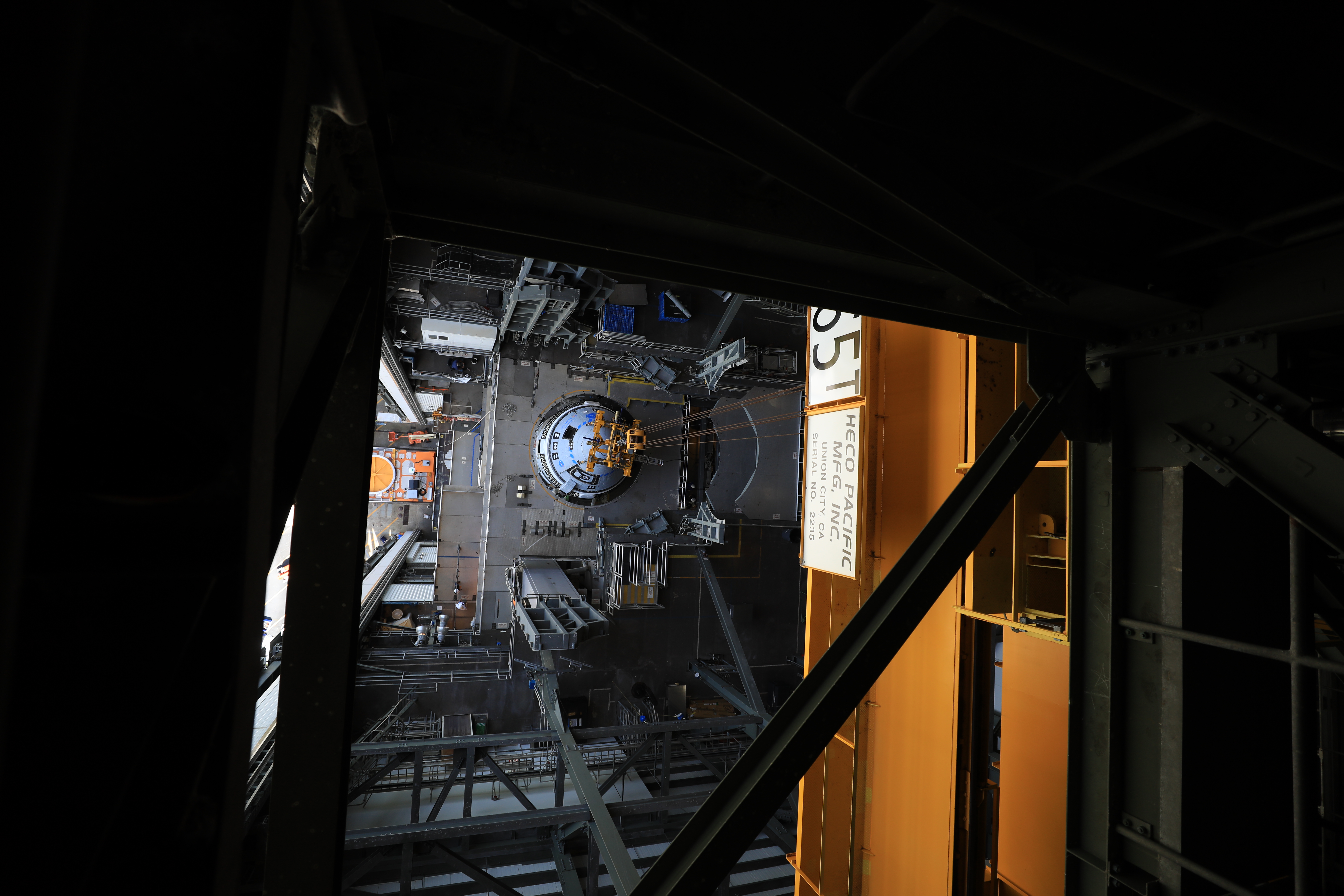 The Boeing CST-100 Starliner spacecraft is lifted at the Vertical Integration Facility at Space Launch Complex-41 at Florida’s Cape Canaveral Space Force Station on May 4, 2022. Starliner will be secured atop a United Launch Alliance Atlas V rocket for Boeing’s second Orbital Flight Test (OFT-2) to the International Space Station for NASA’s Commercial Crew Program. The spacecraft rolled out from Boeing’s Commercial Crew and Cargo Processing Facility at NASA’s Kennedy Space Center earlier in the day.