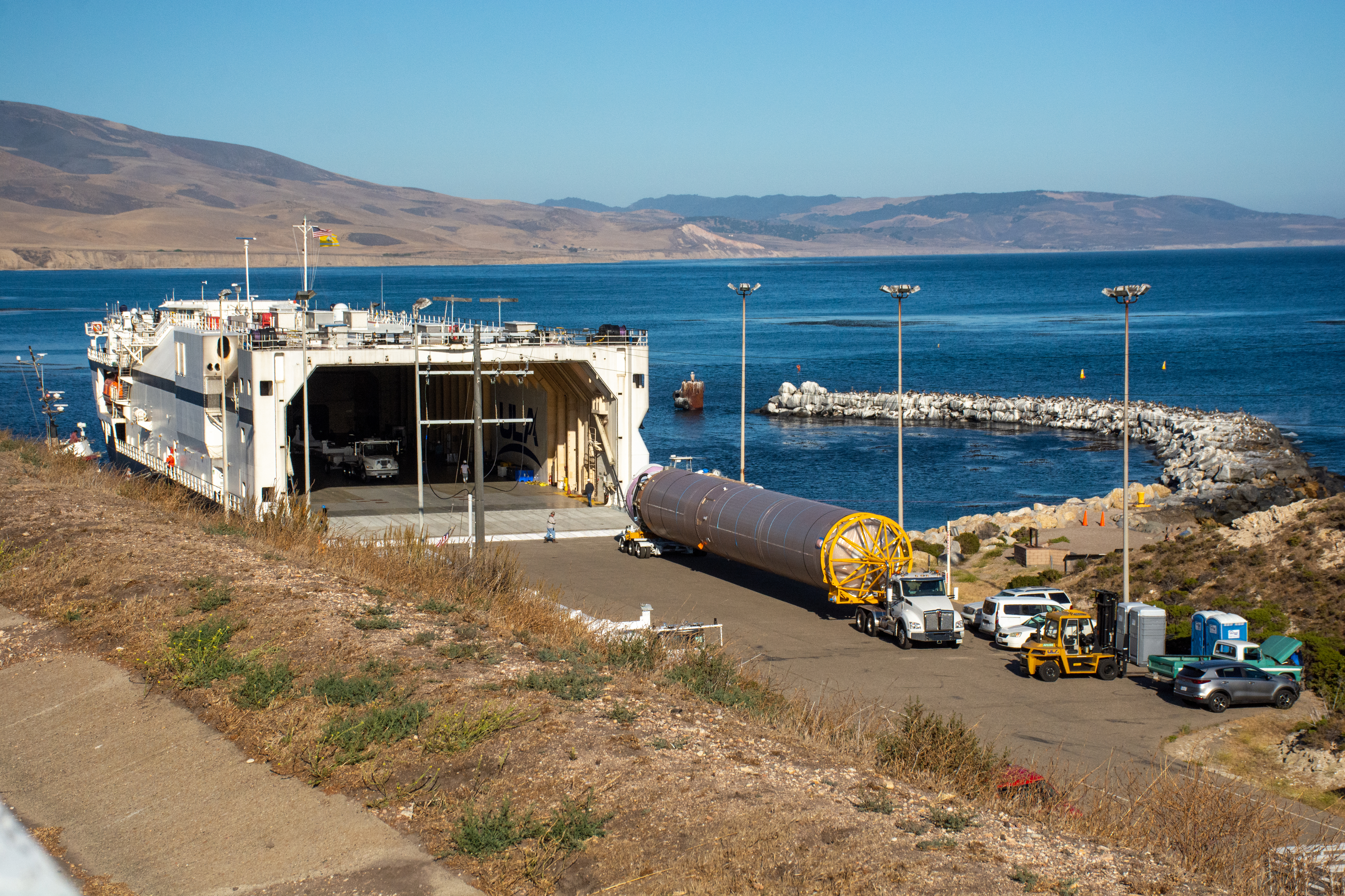 The United Launch Alliance (ULA) Atlas V booster is offloaded from its water transport at Vandenberg Space Force Base (VSFB) in California on July 11, 2022, for NASA and NOAA’s Joint Polar Satellite System-2 (JPSS-2) satellite mission. JPSS-2 is the third satellite in the Joint Polar Satellite System series. It is scheduled to lift off from VSFB on the final ULA Atlas V rocket to launch from Vandenberg. JPSS-2 will scan the globe as it orbits from the North to the South Pole, crossing the equator 14 times a day. From 512 miles above Earth, it will capture data that inform weather forecasts, extreme weather events, and climate change. The Visible Infrared Radiometer Suite instrument will collect imagery for global observations of the land, atmosphere, cryosphere, and oceans. Launching as a secondary payload to JPSS-2 is NASA’s Low-Earth Orbit Flight Test of an Inflatable Decelerator (LOFTID), dedicated to the memory of Bernard Kutter. LOFTID is a demonstration of a hypersonic inflatable aerodynamic decelerator, or aeroshell, technology that could one day help land humans on Mars.
