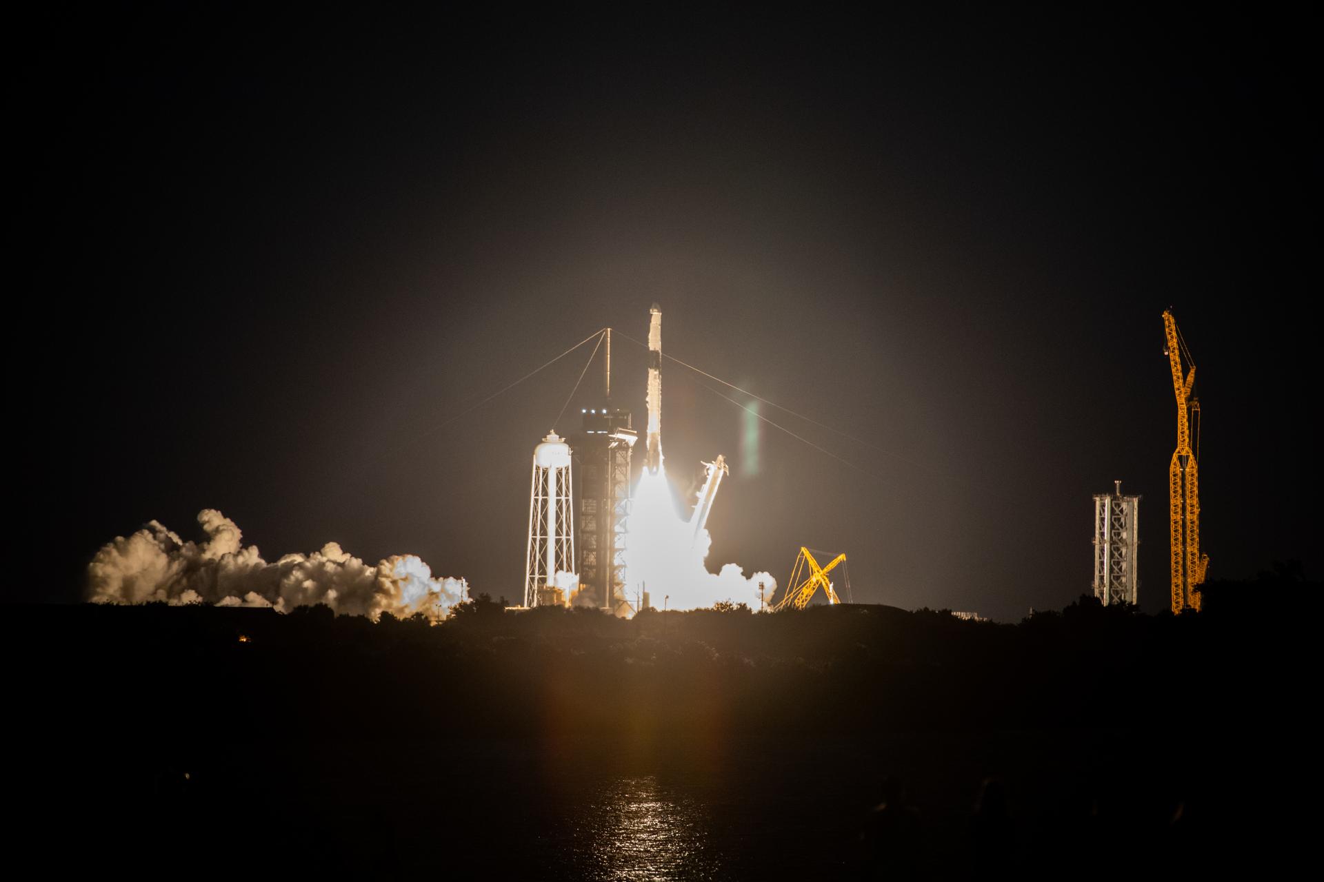 The SpaceX Falcon 9 rocket carrying the Dragon capsule lifts off from Launch Complex 39A at NASA’s Kennedy Space Center in Florida on July 14, 2022, on the company’s 25th Commercial Resupply Services mission for the agency to the International Space Station. Liftoff was at 8:44 p.m. EDT. Dragon will deliver more than 5,800 pounds of cargo, including a variety of NASA investigations, to the space station. The spacecraft is expected to spend about a month attached to the orbiting outpost before it returns to Earth with research and return cargo, splashing down off the coast of Florida.